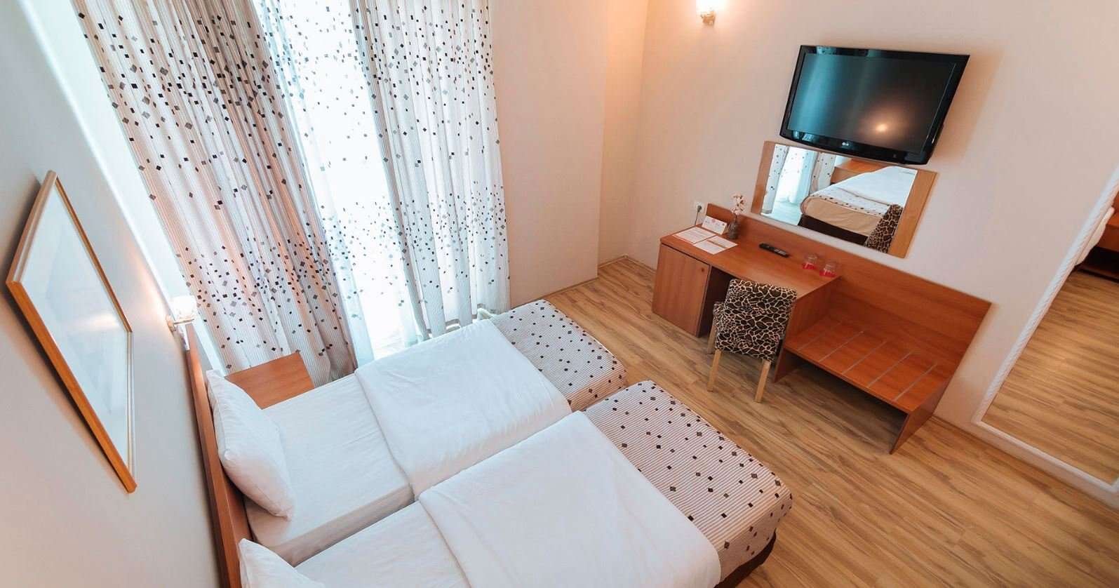 Kétágyas szobák: TV, telefon, minibár (térítés ellenében); légkondicionáló, hűtő, kiságy 2 éves kor alatti gyermek számára kérésre érkezés előtt; erkély (asztal és székek).