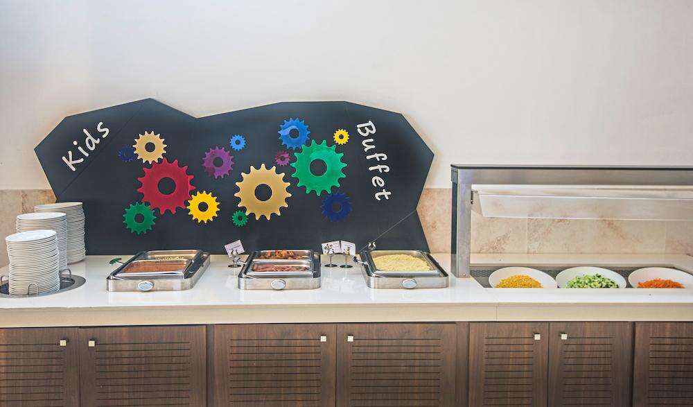 Étkezés: svédasztalos reggeli . Friss gyümölcsök, pékáruk, hideg és meleg fogások, tojásételek, zöldségek, joghurtok és különféle italok – kávé, tea, friss gyümölcslevek – teszik teljessé a kínálatot.. A félpanziós ellátás a reggelin kívül vacsorát is tartalmaz. A vacsora is svédasztalos formában zajlik, amely a nemzetközi és helyi ízek változatos kombinációját nyújtja. A vendégek helyi ciprusi specialitásokat is kóstolhatnak, valamint élvezhetik a tematikus estek változatos fogásait.  Mind a reggelik és vacsorák során kiemelt figyelmet fordítanak az ételek minőségére, frissességére, és igyekeznek minden ételallergiát vagy diétás igényt is kielégíteni.
