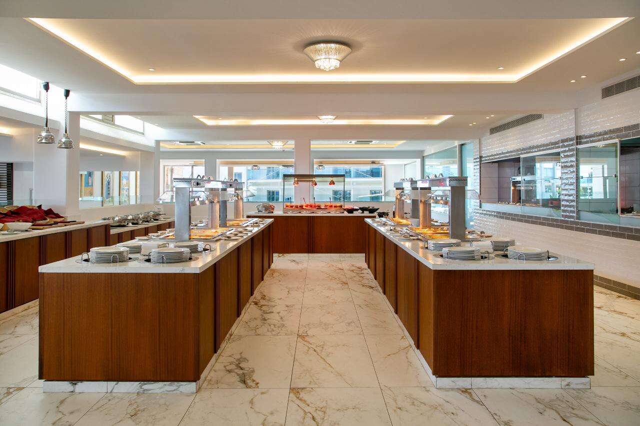 Étkezés: félpanzió, bőségessvédasztalos reggelivel (friss gyümölcsök, pékáruk, hideg és meleg fogások, tojásételek, zöldségek, joghurtok és különféle italok – kávé, tea, gyümölcslevek – teszik teljessé a kínálatot) és büfé vacsorával. Felár ellenében all inclusive ellátás foglalható, benne: reggeli, ebéd és vacsora, délutánonként kávé és tea illetve korlátlan italfogyasztás 10–24 óra között (helyi alkoholos és alkoholmentes italok).  Mind a reggeli, ebéd és vacsorák során kiemelt figyelmet fordítanak az ételek minőségére, frissességére, és igyekeznek minden ételallergiát vagy diétás igényt is kielégíteni. Napközben snackek és könnyű ételek, gyorséttermi ételek is elérhetők, valamint jégkrémek, kávé és sütemények a délutáni órákban. Előzetes helyszíni regisztrációval heti egy alkalommal vacsora átjelentkezést a szálloda a’ la carte éttermeibe (Koralli Seafood és Golden Sands Italian Restaurant).