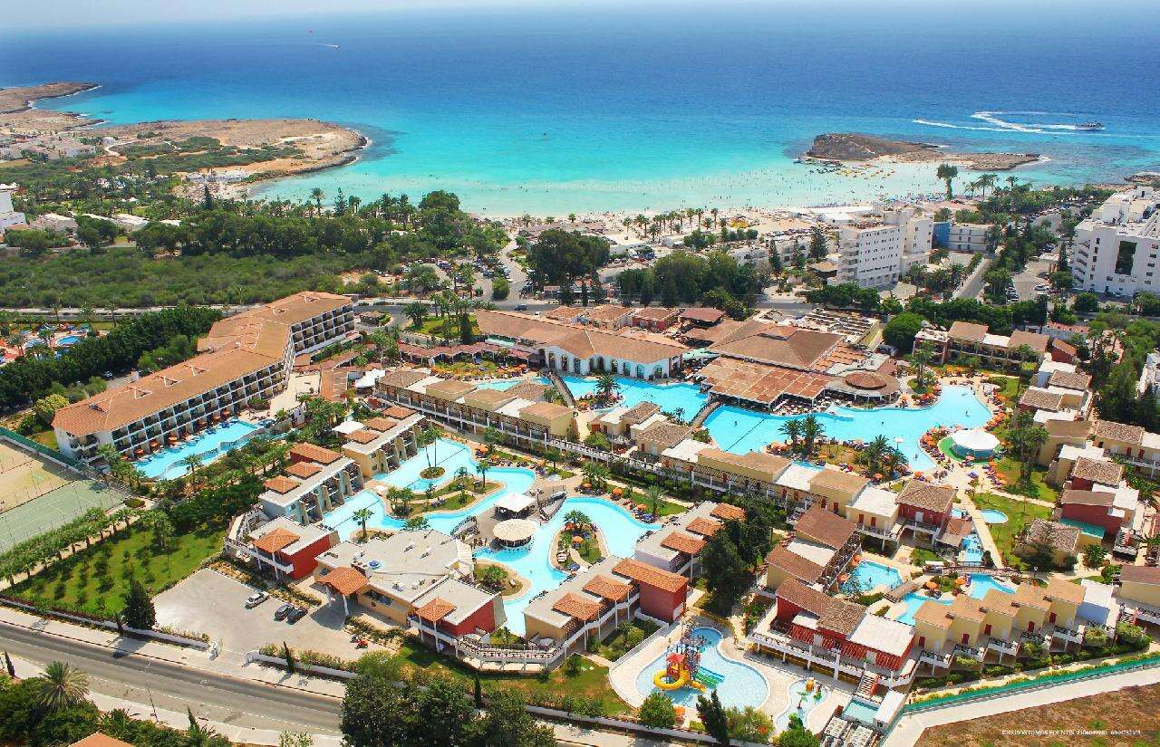 Fekvése: Ayia Napa üdülőhelyen épült, kiváló elhelyezkedésű szálloda, talán egész Ciprus legszebb strandján, a híres Nissi Bay fehérhomokos tengerpartjánál található. A háromszázhuszonhat szobás, főépületből és több kétszintes kerti villából álló, hatalmas medencerendszerrel rendelkező, a közelmúltban teljesen felújított, rendkívül népszerű, karibi hangulatú szálloda, a fehér homokos, és pálmafákkal körülvett lassan mélyülő strandtól mindössze száz méterre található. A nyüzsgő Ayia Napa központja 2,5 km-re található, amelyet könnyedén elérhet taxi vagy helyi buszjáratok segítségével. Ha szeretné megtapasztalni a ciprusi vendégszeretetet és élvezni a Nissi Beach közelségét, foglaljon most!