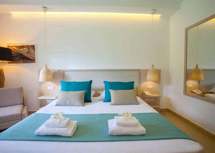 Szobák: minden standard szoba kényelmes méretű, modern bútorozású, elegánsan berendezett, egyhálószobás (26m2), fürdőszobás, légkondicionálóval, hajszárítóval, síkképernyős tv-vel, szobaszéffel, hűtővel, vízforralóval (kávé és teafőzési lehetőség) és telefonnal felszerelt. A családi szobák nagyobb alapterületűek (30m2), hasonlóan felszereltek, hálószobával és egy kisebb külön hálórésszel rendelkeznek a gyerekeknek, a két helységet egy tolóajtó(paravánfal) választja el. A családi lakosztályok kifejezetten családokra lettek tervezve, külön hálórésszel rendelkeznek a gyerekeknek. A családi lakosztályok jóval nagyobb alapterületűek (40m2), két szobásak, mely szobákhoz egy hálószoba és egy tágas nappali tartozik. A szobák elhelyezkedése a főépületben, illetve a kerti épületekben is előfordulhat (szobák kiosztása a szálloda hatásköre). A szobákhoz erkély tartozik, szárazföldre vagy medencére néző kilátással. Minibár a helyszínen térítés ellenében.