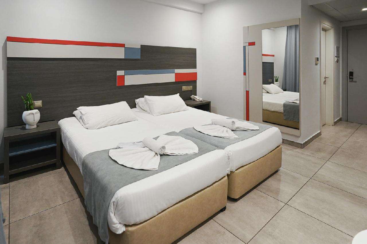 Fekvése: Az Ayia Napa szívében található Nicholas Color Hotel modern, színes dizájnjával és barátságos hangulatával várja vendégeit. Az élénk, vidám színek és barátságos környezet megalapozzák a hangulatot egy tökéletes nyaraláshoz. A város nyüzsgése és a strandok közelsége mellett a hotel számos szolgáltatást kínál, hogy a vendégek teljes kikapcsolódást élvezhessenek. A hotel központi elhelyezkedésének köszönhetően számos üzlet, étterem és szórakozóhely rövid sétával elérhető, míg Ayia Napa híres éjszakai élete és nevezetességei, mint például a történelmi Kolostor és a Thalassa Múzeum kb. 800 méterre, a népszerű homokos városi strandtól(Limanaki Beach) és a kikötőtől pedig mindössze kb. 450 méterre található. A buszmegálló közelsége lehetővé teszi a kényelmes közlekedést a környező látványosságokhoz és a közeli strandokhoz (jegyár napközben a városközpontban kb. 1,50 euró). A Nicholas Color Hotel tökéletes választás mindazoknak, akik kényelmes és modern szállást keresnek, Ayia Napa központjának közelségében, anélkül, hogy lemondanának a nyugodt kikapcsolódásról. A barátságos környezet, kiváló felszereltség és széles körű szolgáltatások minden korosztály számára vonzóvá teszi a hotelt. Foglaljon most!