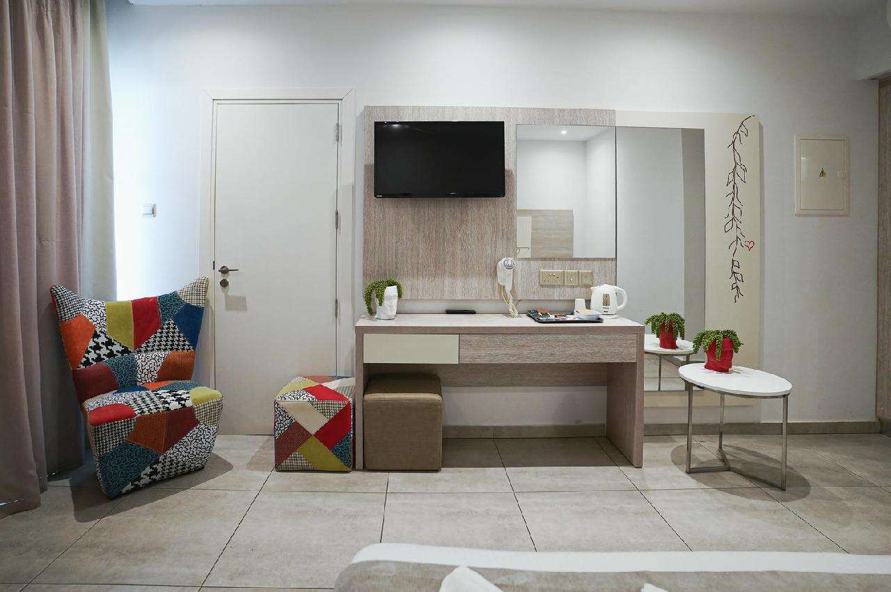 Szobák: A szálloda 100 modern stílusban berendezett, egyedi színvilágú szobával rendelkezik, amelyek mindegyike légkondicionált, saját fürdőszobával, hajszárítóval, síkképernyős TV-vel, telefonnal és minihűtővel felszerelt. A szuperior szobák és családi szobák  (~22-25 m²) kényelmes elhelyezést biztosítanak 2-4 fő részére, minden szobához erkély tartozik, kilátással a kertre, az utcára vagy a medencére. Széf és minibár térítés ellenében a helyszínen igényelhető.