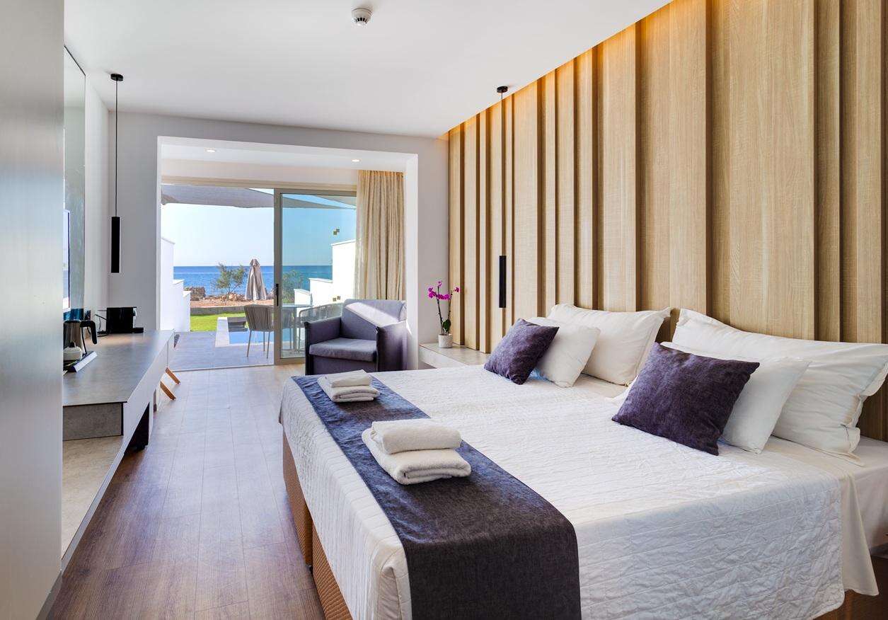 Szobák: minden szoba praktikusan berendezett, egy hálószobás (~22m2), fürdőszobás, légkondicionálóval, síkképernyős tv-vel, hajszárítóval és telefonnal felszerelt. Szoba széf, vasaló, vízforraló és hűtő, térítés ellenében bérelhető. A szobához erkély tartozik, szárazföldi, medencére vagy tengerre néző kilátással. Különösen népszerűek a tengerre néző szobák melyek lenyűgöző kilátást kínálnak a tengerre, és kiváló választás azok számára, akik a napfelkeltét vagy naplementét szeretnék élvezni a szobájuk erkélyéről. A Swim Up szobák az új épületblokkban találhatók, berendezésük magas színvonalú, felszereltségük ugyanaz, erkélyükről közvetlen medencekapcsolattal rendelkeznek (privát- kisméretű medence) és kilátással a tengerre.
