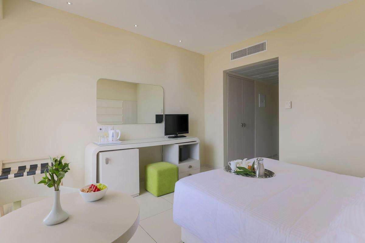 Szobák: minden standard szoba ízlésesen dekoratív, egy hálószobás(~24m2), fürdőszobás, légkondicionálóval, hajszárítóval, vízforralóval, síkképernyős tv-vel, hűtővel, széffel és telefonnal felszerelt. A prémium szoba extra luxust, tágasabb teret (~28m2) és prémium szolgáltatásokat kínál, felszereltségében extra kényelmi szolgáltatások találhatók, mint például: fürdőköpeny, szobapapucs és Nespresso kávéfőző gép. A szobákhoz erkély vagy balkon tartozik szárazföldre, korlátozottan tengerre néző, illetve tengerre néző kilátással.