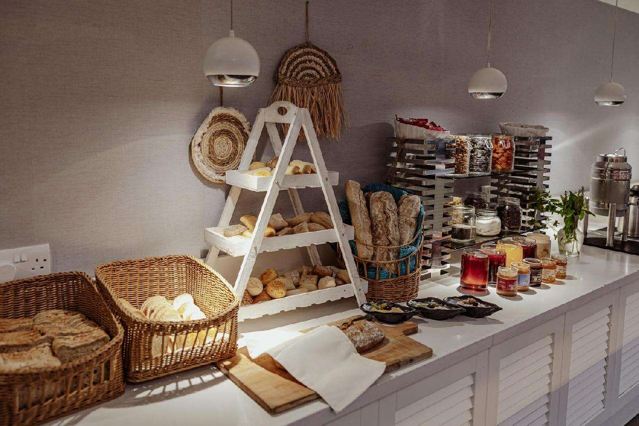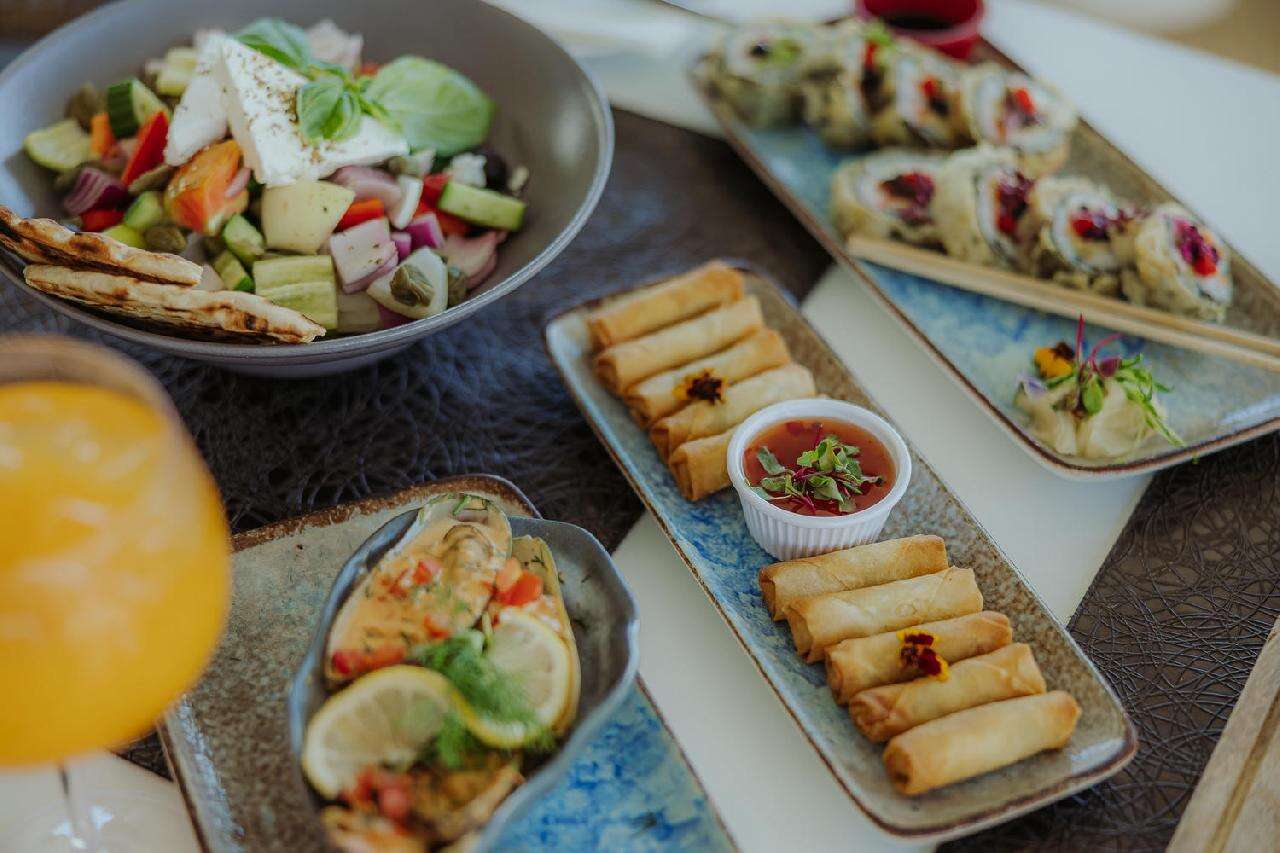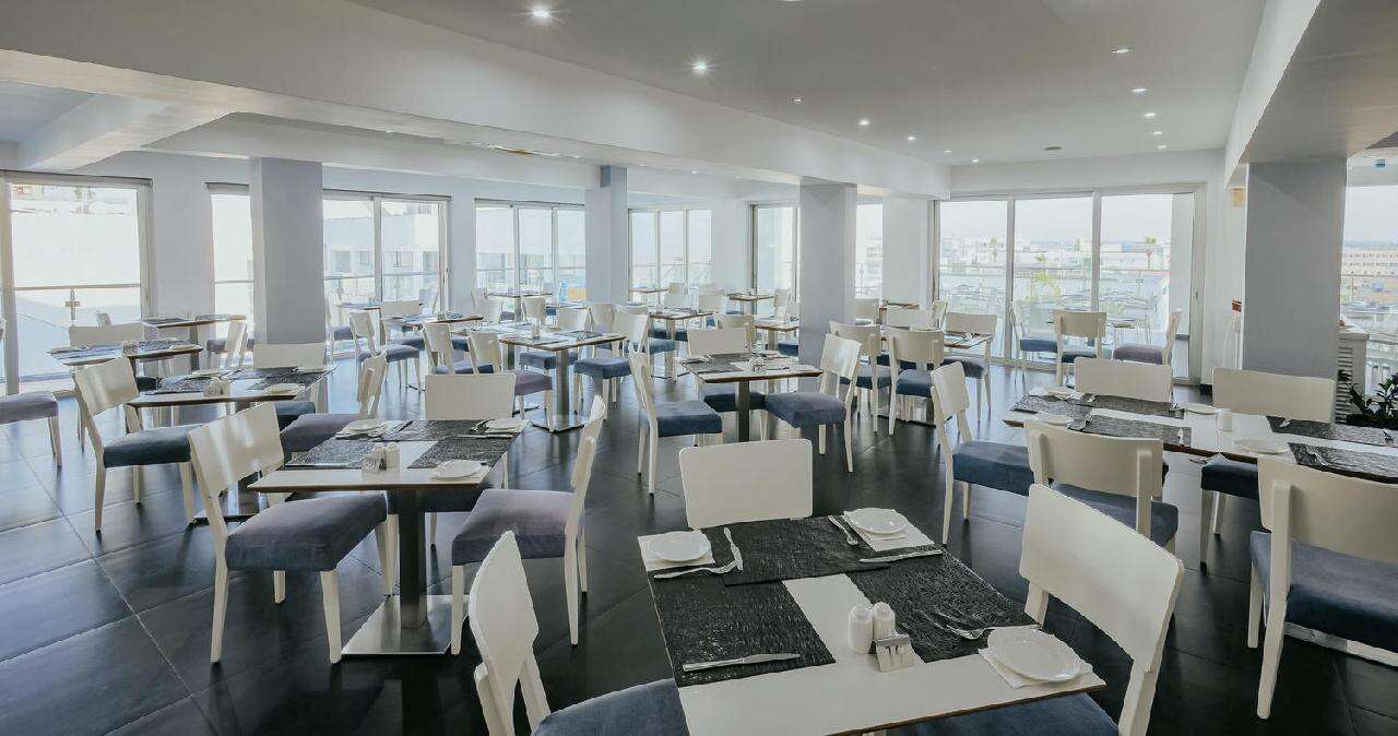 Étkezés: Félpanzió, büfé reggelivel és büfé vacsorával. A főétkezések során széles választék várja a vendégeket, beleértve a helyi ciprusi fogásokat és a nemzetközi konyha kedvenceit is. A vacsora friss salátákat, húsokat, halakat és tésztákat tartalmaz, kiegészítve különféle desszertekkel, helyi gyümölcsökkel és süteményekkel. Felár ellenében all inclusive ellátás foglalható, benne: reggeli, ebéd és vacsora, napközben snack ételek és szendvicsek, korlátlan italfogyasztás 10–23 óra között. Az italválaszték pohárban felszolgálva, a szálloda által meghatározott helyi és alkoholos és üdítőitalokra, vízre és gépi kávéra vonatkozik. Az import és palackozott italok fogyasztása térítéshez kötött