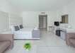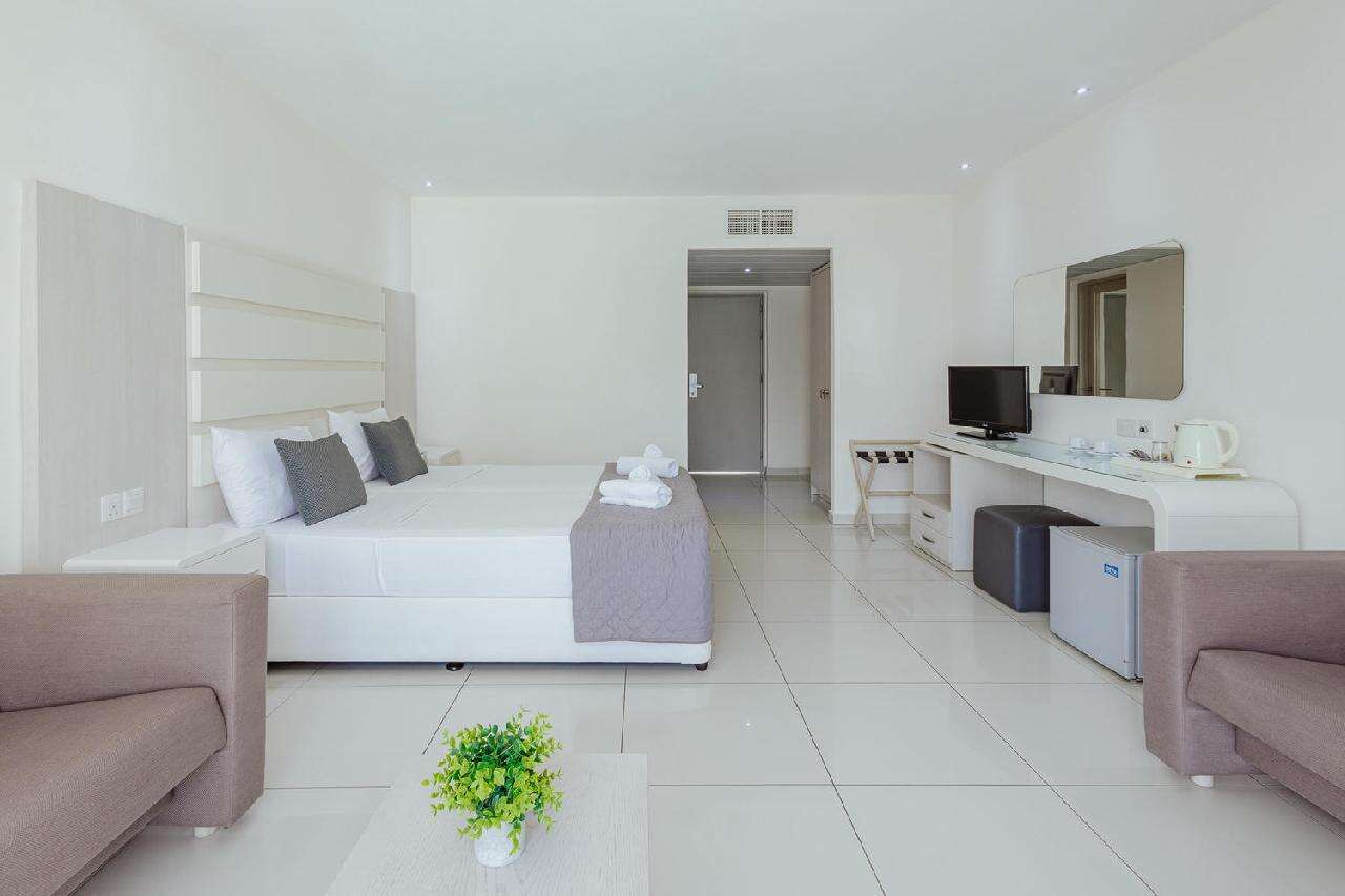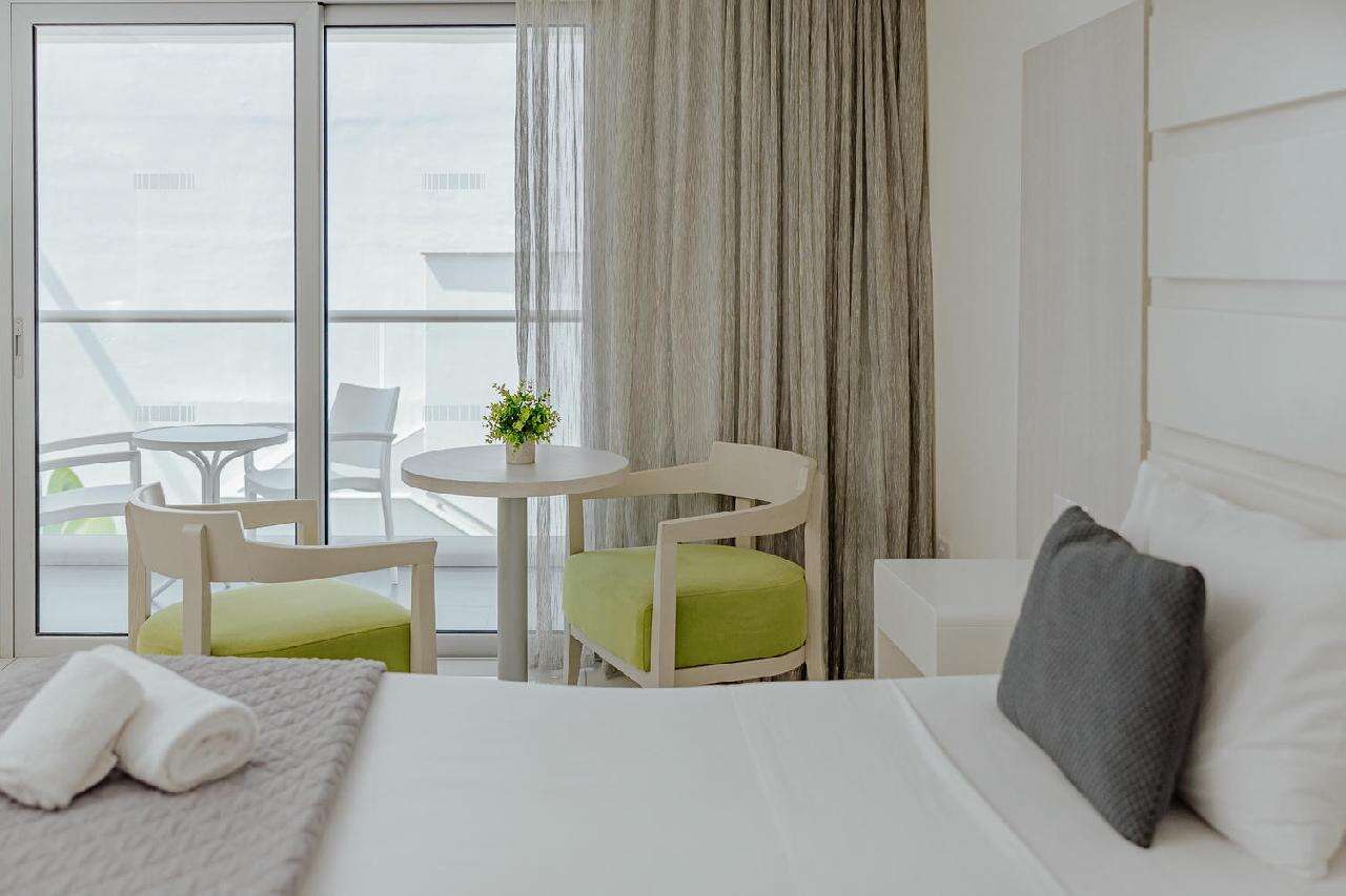 Szobák: minden szoba modern, minimalista stílusban berendezett, egy hálószobás (~23 m2), légkondicionált, fürdőszobás, hajszárítóval, telefonnal, síkképernyős tv-vel és vízforralóval (tea és kávéfőzési lehetőség) felszerelt. Széf és minihűtő térítés ellenében bérelhető. A szuperior családi szoba hasonló stílusban és felszereltséggel berendezett, azonban alapterülete nagyobb (~32 m2), kifejezetten alkalmas többtagú családok számára (a pótágy kihúzható dívány). A szobákhoz szárazföldre, belső udvarra vagy medencére néző erkély, a szuperior családi szobákhoz pedig szárazföldre néző erkély tartozik.