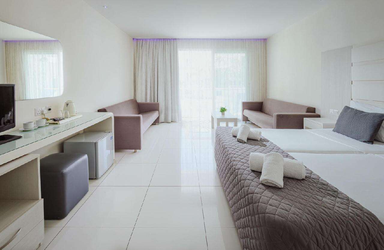 Fekvése: A 120 szobás több épületblokkból álló, kiváló elhelyezkedésű szálláshely Ayia Napán, a város központjától mindössze pár perc sétára, a bulinegyed közelében, így a főbb látnivalók és a szórakozási lehetőségek is gyorsan elérhetők. A híres városi, Limanaki Beach strand csupán 650 méterre található a hoteltől, ideális választás azoknak, akik szeretnék a pihenést a városi élet nyüzsgésével ötvözni. A környék bárokkal, üzletekkel és éttermekkel van tele, így a vendégek könnyen hozzáférhetnek a szórakozási lehetőségekhez. A képeslapokról ismert, fehérhomokos Nissi Beach (3,5km) taxival vagy tömegközlekedéssel is könnyedén elérhető (buszmegálló a közelben, jegyár napközben kb. 1.50 eur). A Tasia Maris Oasis Hotel egy kellemes, modern szállás, tökéletes választás Ayia Napa szívében. Foglaljon most!
