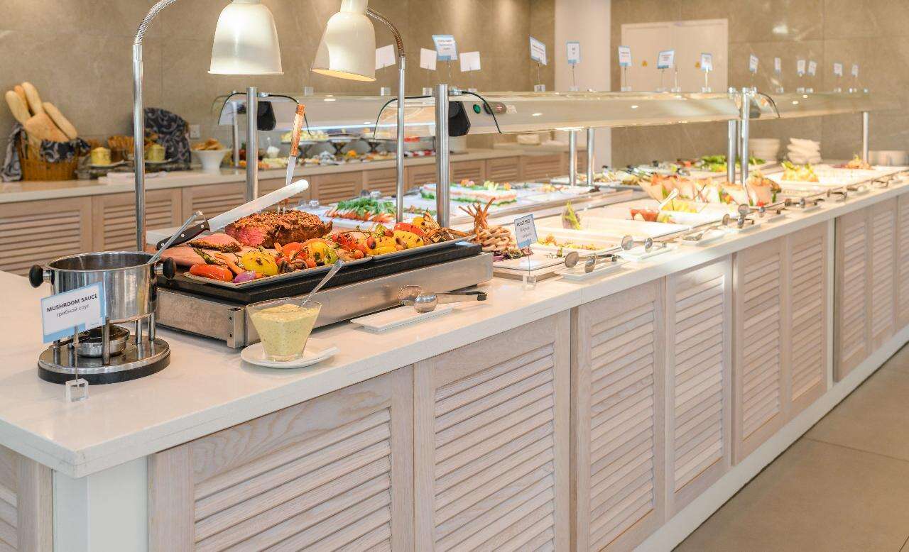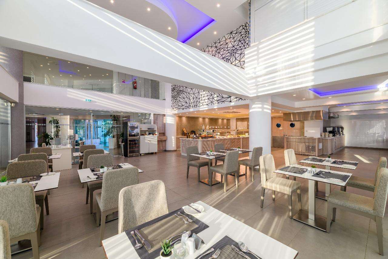 Étkezés: reggeli (büféreggeli), félpanzió (büféreggeli és büfévacsora) a helyi mediterrán és nemzetközi konyha ízeivel vagy all inclusive ellátás foglalható, benne: reggeli (07:30-10:00), ebéd (12:30-14:30) és vacsora (19:00-21:30), snack ételek és szendvicsek (11:00-12:30 és 15:00-18:00 óra között), jégkrémek, korlátlan italfogyasztás 10:00–23:30 óra között. Az italválaszték pohárban felszolgálva, a szálloda által meghatározott helyi és alkoholos és üdítőitalokra, vízre és gépi kávéra vonatkozik. Az import és palackozott italok fogyasztása térítéshez kötött.