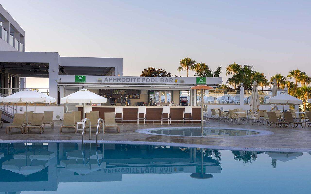 Családbarát szálloda Ayia Napa népszerű tengerparti üdülőhely lankásabb részén, a Grecian Bay nevű öbölben, egy kiugró sziklaszirten, enyhén emelkedő területen található, csupán 450 méterre a gyönyörű Grecian Bay homokos strandjától.