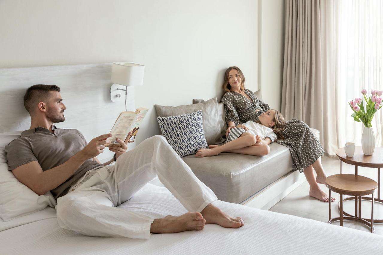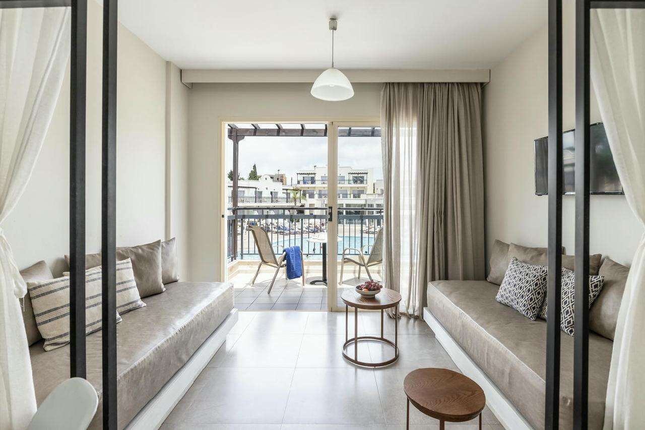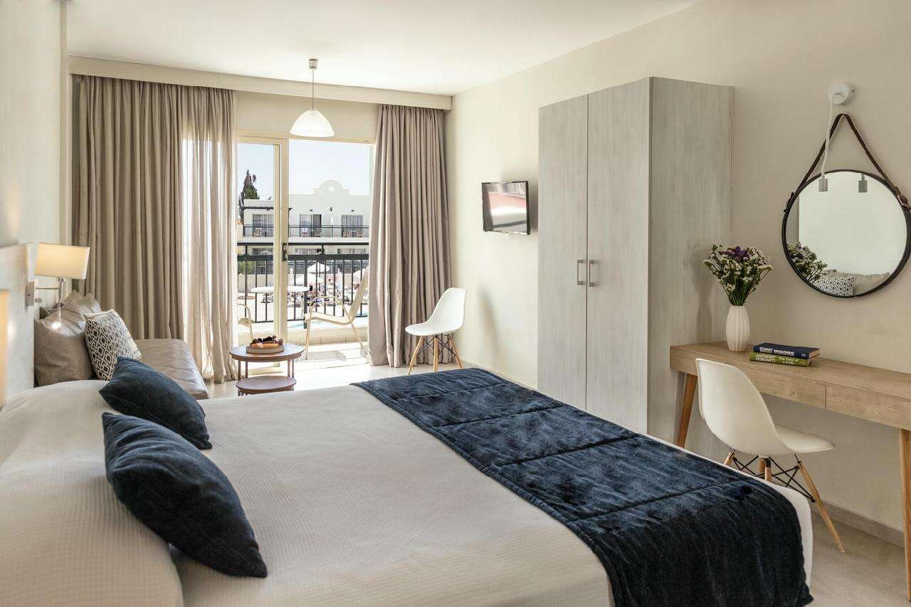 Szobák: minden szuperior stúdió (kb.28 m2) elegánsan kialakított, modern, természetes színvilággal, puha textíliákkal és kényelmes bútorokkal várja a vendégeket, légkondicionált, fürdőszobás, hajszárítóval, minihűtővel, vízforralóval (kávé-, teakészítése lehetőség), mikrohullámú sütővel, síkképernyős tv-vel, szobaszéffel és telefonnal felszerelt. A családi lakosztályok nagyobb alapterületűek (kb. 35m2), külön hálószobával és nappali résszel rendelkezik, ideális családok vagy több teret igénylő vendégek számára. Ugyanazokat a kényelmi felszereléseket kínálja, mint a stúdiók, de nagyobb alapterület és külön pihenőtér jellemzi. A szuperior stúdiókhoz és lakosztályokhoz erkély vagy terasz tartozik, szárazföldre, medencére és oldal tengerre néző kilátással.
