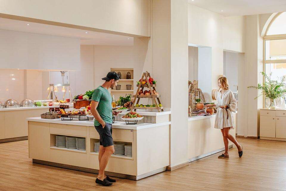 Étkezés: prémium all inclusive ellátás. Tartalmazza: svédasztalos reggeli (07.00-10.00), ebéd (12.30-15.00) és vacsora (18.30-21.30), a főétkezések között büfésarok snack ételekkel, délutáni kávé és sütemény, helyi jégkrémek, korlátlan italfogyasztás 10–24 óra között: a szálloda által megjelölt helyi és nemzetközi röviditalok széles választéka, koktélok, sörök, borok, gyümölcslé, szénsavas üdítőitalok, ásványvíz, kávé, tea. Térítésmentes átfoglalási lehetőség a görög étterembe (1 alkalommal). Ebédcsomag készítése (amennyiben a napot nem a szállodában töltik), mely szendvicseket, gyümölcsöt, édességet, ásványvizet és gyümölcslét tartalmaz (24 órával korábban a recepción kell igényelni).