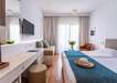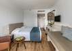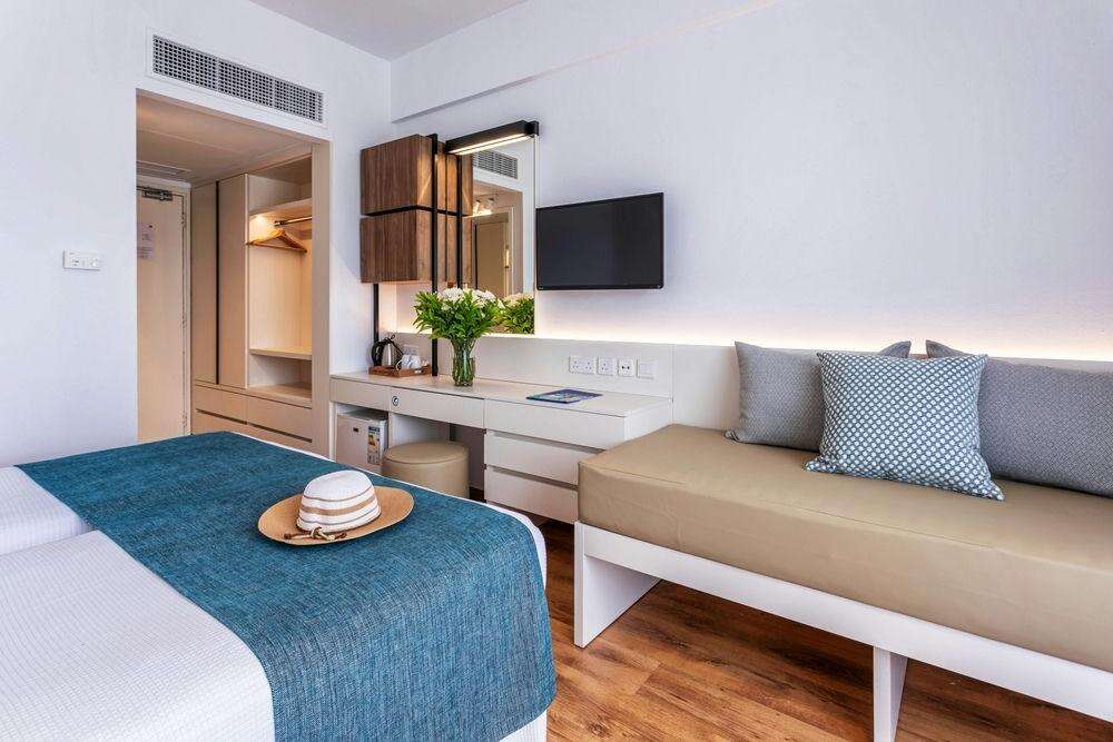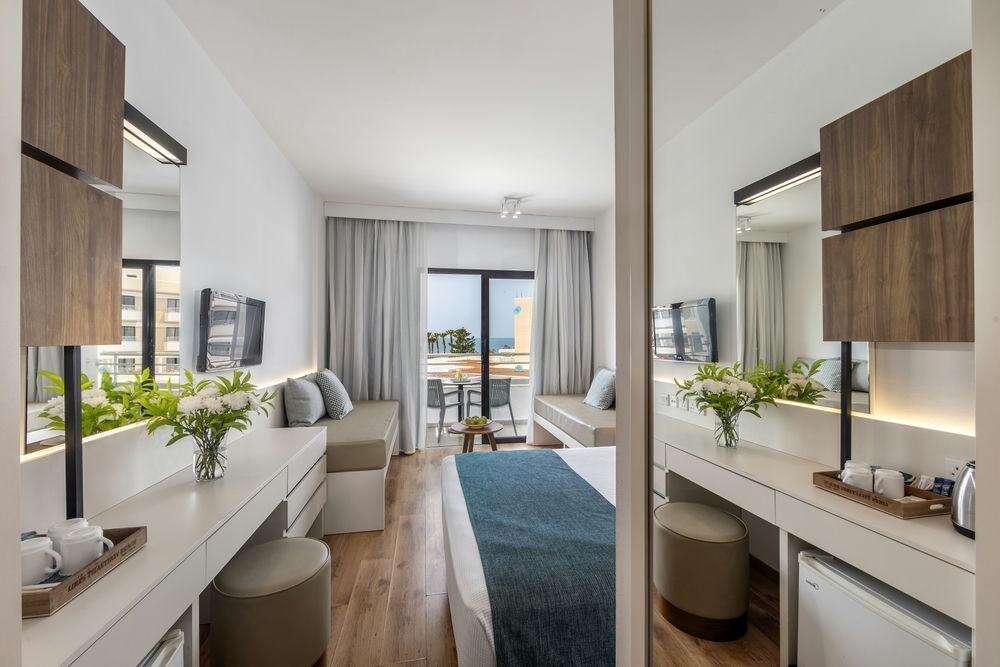 Szobák: minden szoba barátságosan berendezett, világos, letisztult stílusával a nyugodt pihenést szolgálja, egyhálószobás (kb. 19 m2), légkondicionált, fürdőszobás, síkképernyős tv-vel, telefonnal és vízforralóval (kávé-, teakészítése lehetőség), és minihűtővel felszerelt. A családi szobák felszereltsége hasonló, kialakításuknak köszönhetően kényelmes teret biztosítanak a közös pihenéshez – ideális választás gyermekes családok számára.  A szobákhoz erkély tartozik szárazföldre vagy tengerre néző kilátással. Térítés ellenében szobaszéf a helyszínen bérelhető.