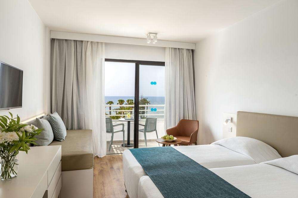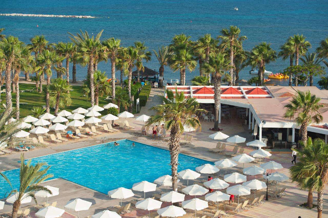 Fekvése: Paphos üdülőövezeti, Kato Paphos elnevezésű részén, a város szélén, közvetlenül a tengerparton, a térség egyik leghosszabb egybefüggő homokos strandja közelében épült, családok számára ideális, saját kis csúszdaparkkal és barátságos személyzettel rendelkező klubhotel. A szálloda előtti partszakasz sziklás, azonban kb.200 méter távolságra a helyiek körében is rendkívül népszerű homokos strand található. A hotel elhelyezkedése ideális a pihenni vágyó családok és az aktív utazók számára egyaránt: a szálloda közelében kezdődő tengerparti sétányon végighaladva elérhető a festői paphosi kikötő és az óváros bájos kávézói, üzletei. A szálloda rendezett kertje és mediterrán növényzete igazi nyugalom-sziget, miközben a környék hangulata garantálja a ciprusi életérzést. Paphos városközpontja és a kikötő kb.3 km-re fekszik.  Buszmegálló található a szálloda közelében, ahonnan rendszeres járatok indulnak Paphos központja felé.