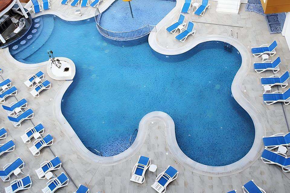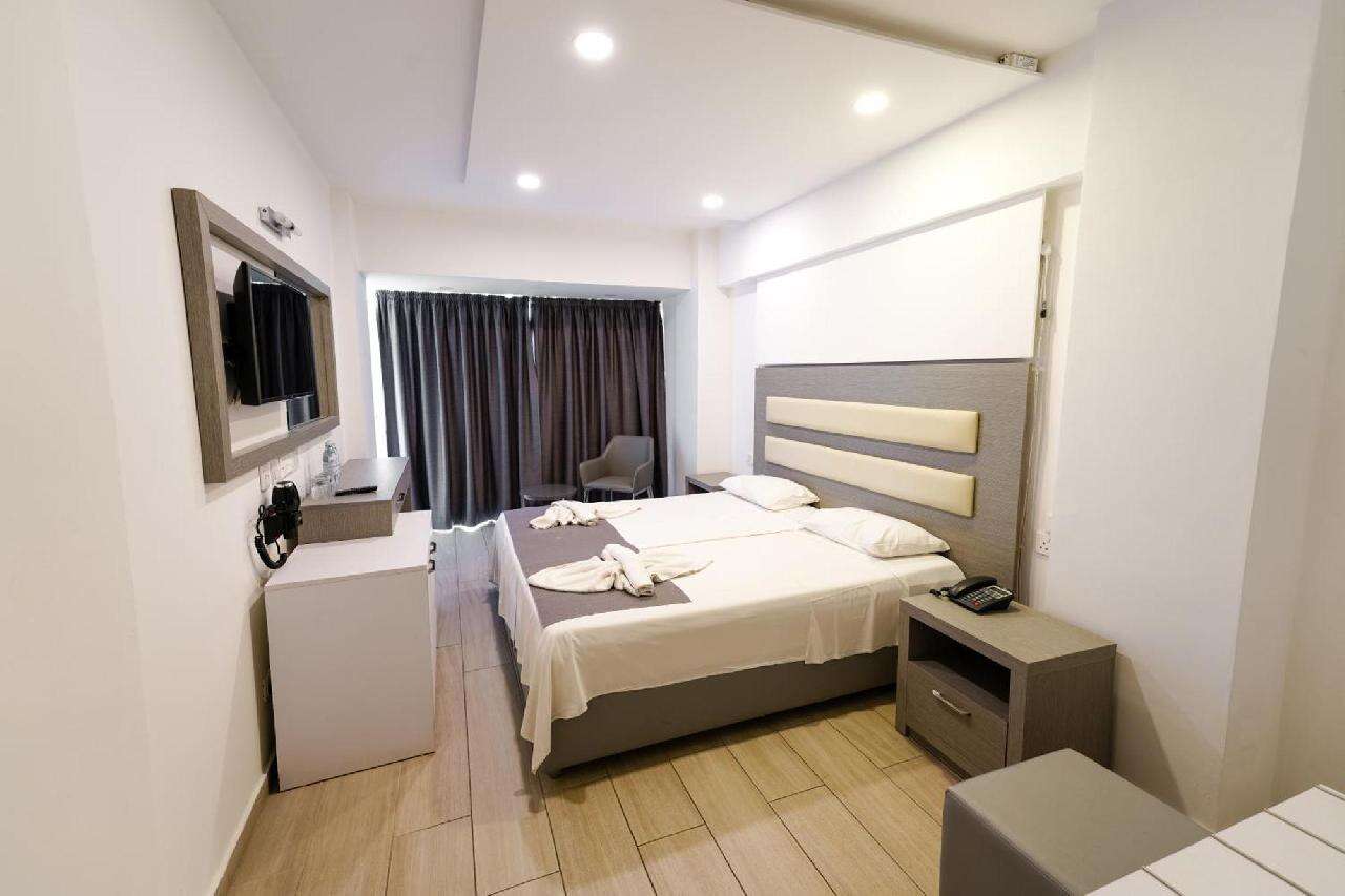 Szobák: minden szoba modern és tágas kialakítású (~25m2), praktikusan berendezett, fürdőszobás, légkondicionálóval, hajszárítóval, síkképernyős tv-vel, vízforralóval, szobaszéffel, hűtővel és telefonnal felszerelt. A szobához erkély tartozik melyek az utcára, medencére vagy a tengerre nézhetnek.