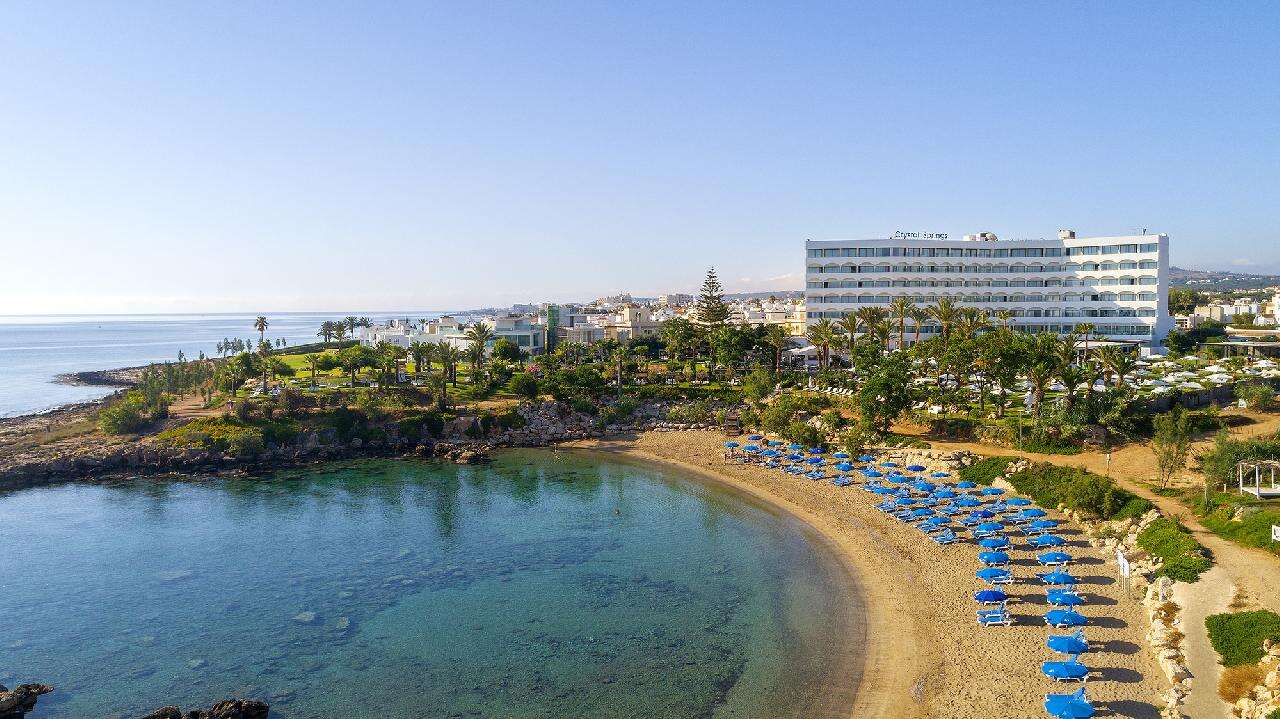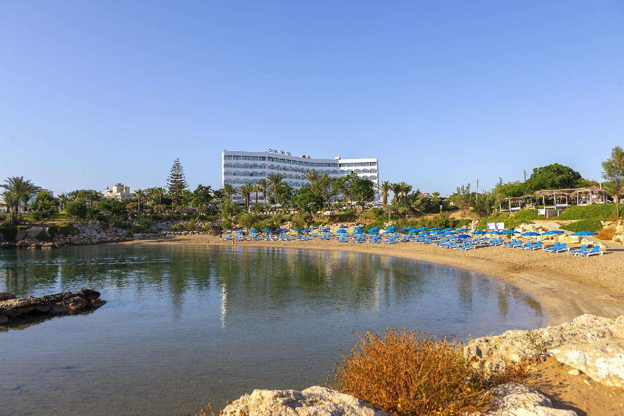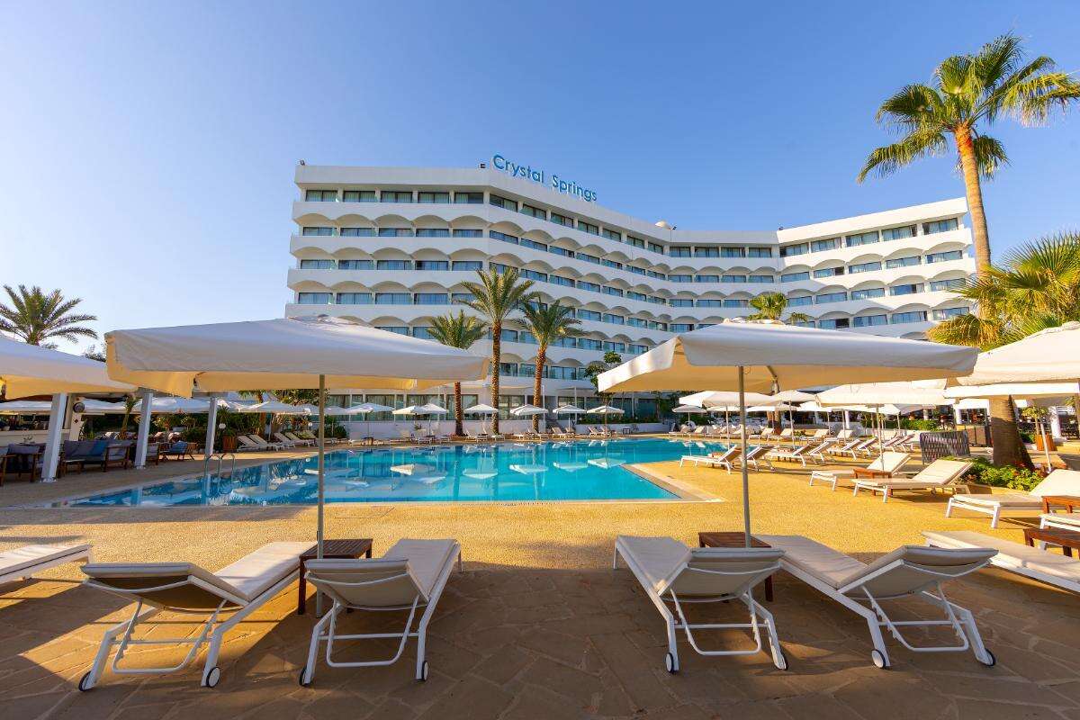 a kivételes fekvésű, Crystal Springs Beach Hotel Ciprus keleti partján, Protaras üdülőövezeti részén, egy hangulatos, védett kis öbölben található. Közvetlenül a homokos tengerparton fekszik, amely kristálytiszta vizéről és lassan mélyülő strandjáról híres – ideális választás kisgyermekes családok és párok számára egyaránt (a strand a szépen gondozott, virágos kerten keresztül érhető el).