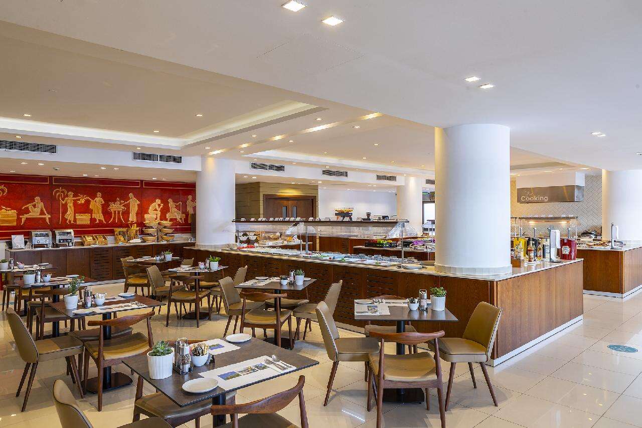 Ellátás: félpanzió, büféreggeli és vacsora. Felár ellenében all inclusive ellátás foglalható, benne: büfé reggeli (07:00-10:00), ebéd (12:30-14:30) és vacsora naponta változó témában pl. mediterrán, görög, ázsiai, mexikói (18:30-21:30), napközben könnyű ételek és szendvicsek (10:30-12:30 és 14:30-17:00 között), helyi jégkrémek, korlátlan italfogyasztás 10:00–23:00 óra között. Az italválaszték pohárban felszolgálva, a szálloda által meghatározott helyi és alkoholos és üdítőitalokra, vízre és gépi kávéra vonatkozik. Az import és palackozott italok fogyasztása térítéshez kötött.