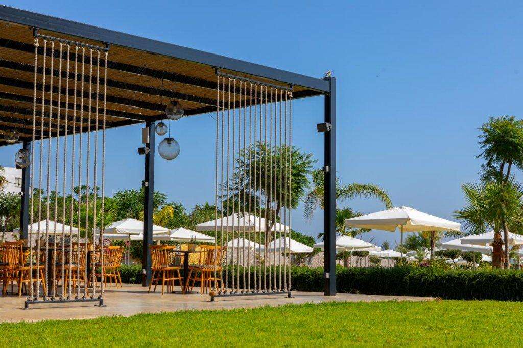 Fekvése: a kivételes fekvésű, Crystal Springs Beach Hotel Ciprus keleti partján, Protaras üdülőövezeti részén, egy hangulatos, védett kis öbölben található. Közvetlenül a homokos tengerparton fekszik, amely kristálytiszta vizéről és lassan mélyülő strandjáról híres – ideális választás kisgyermekes családok és párok számára egyaránt (a strand a szépen gondozott, virágos kerten keresztül érhető el). A hotel környezetét ápolt mediterrán kert, pálmafák, virágzó növények és színes bougainvillea bokrok díszítik, amelyek igazi trópusi hangulatot árasztanak. Protaras központjától kb. 3 km-re, ahol éttermek, bárok, üzletek és szórakozási lehetőségek várják a vendégeket. A magas színvonalú szolgáltatások, a barátságos személyzet, valamint a családbarát létesítmények miatt különösen ajánlott családoknak, pároknak és idősebb utazóknak is. A szálloda kitűnő értékeléseket kapott vendégeitől a tisztaságért, a strand közelségéért és az ételek minőségéért – valódi ciprusi vendégszeretet egy modern, elegáns környezetben. A buszmegálló közvetlenül a szálloda előtt helyezkedik el, így Ayia Napa (kb. 10 km) is könnyen elérhető. A Larnaca nemzetközi repülőtér mintegy 50 km-re található.