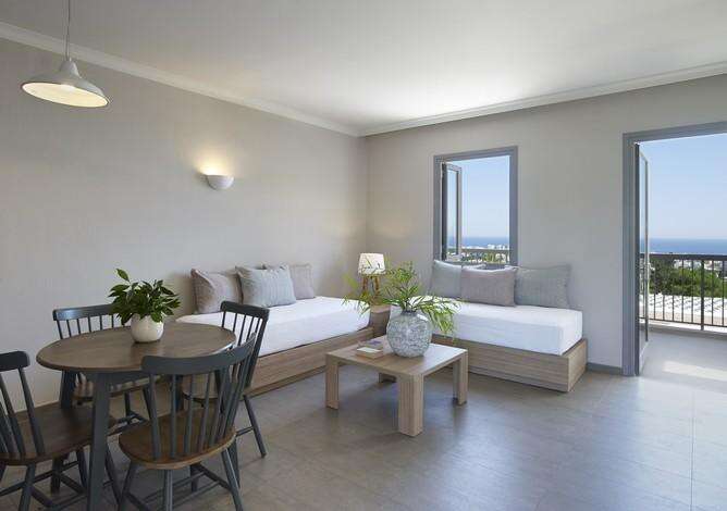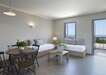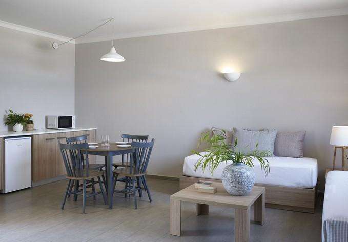Szuperior Stúdió (35-38 m²). Felszereltségük magában foglalja a légkondicionálót, síkképernyős TV-t, minihűtőt, széfet, vízforralót (tea és kávéfőzési lehetőség), ortopéd ágyak, ingyenes WiFi-t, fürdőköpenyt és papucsot, valamint a modern fürdőszobát, hajszárítóval. Az erkéllyel rendelkező szobákból kilátás nyílhat a szárazföldre vagy a kertre.