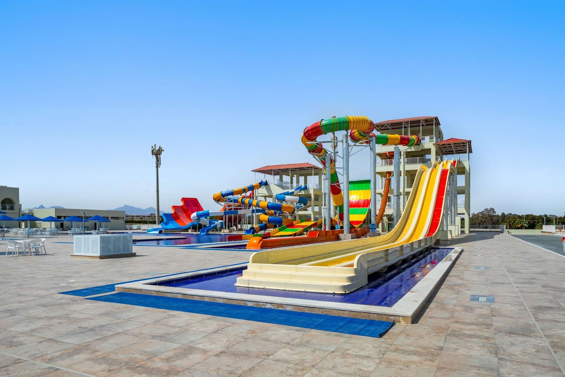 aquapark gyerekeknek (5 csúszda) és felnőtteknek (9 csúszda)
