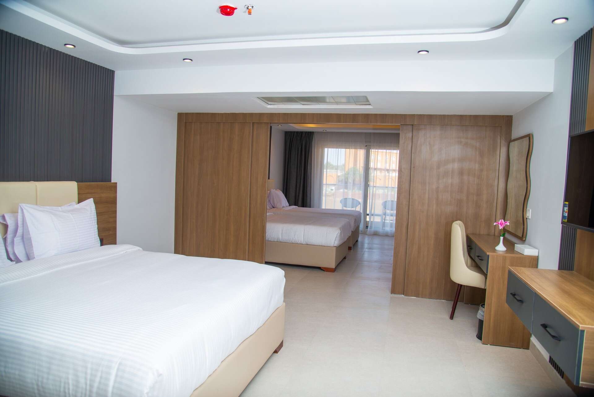 családi szobák - 2 hálószoba tolóajtóval elválasztva