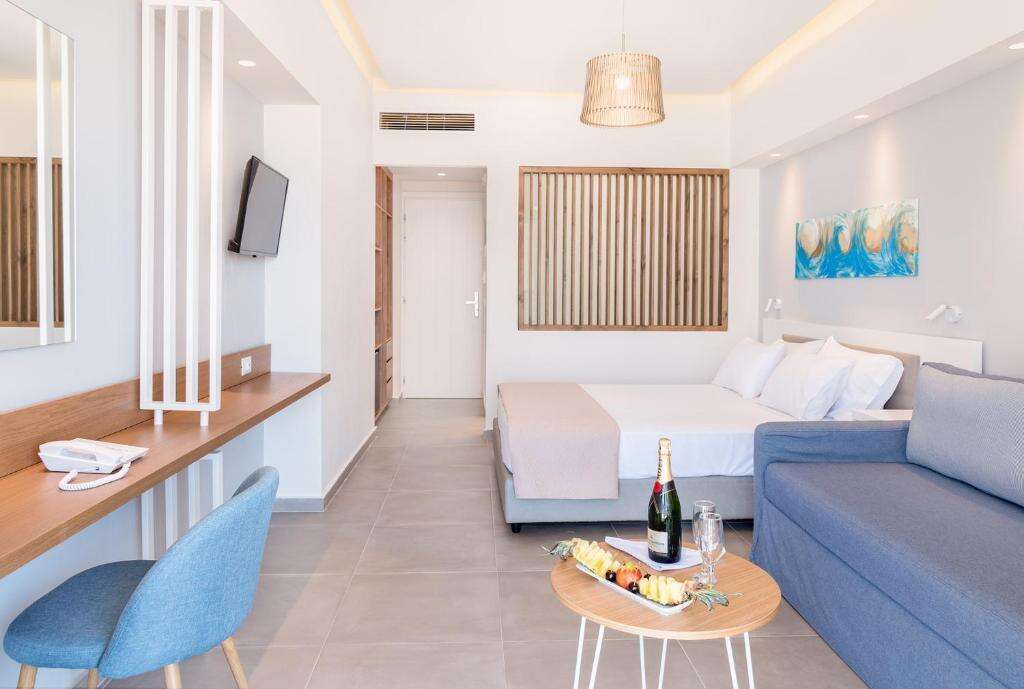 A szálloda all inclusive ellátást kínál: bőséges büféreggeli, -ebéd és -vacsora, napközbeni snackek, kávé, tea és helyi italok. A közelben további éttermek és tavernák széles választéka várja a vendégeket, akik szeretnék kipróbálni a helyi krétai ízeket.