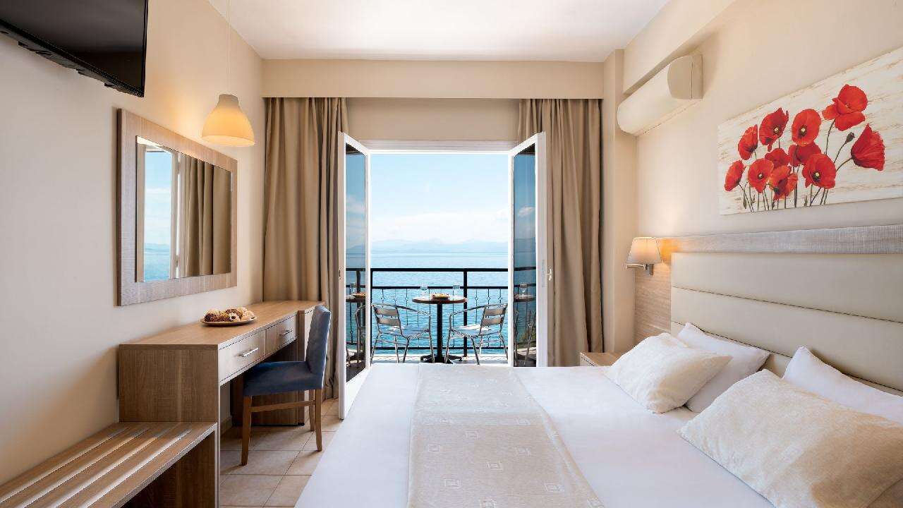 A szálloda Agios Ioannis Peristeron festői tengerparti részén épült, közvetlenül egy kavicsos parthoz közel, ahonnan csodás kilátás nyílik a Jón-tengerre és a görög szárazföld irányába. A környezet jellegzetesen mediterrán: a part mentén zöld dombok és olajfák, valamint csendes, nyugodt sétányok várják a vendégeket, így ideális pihenőhely családoknak és pároknak egyaránt.