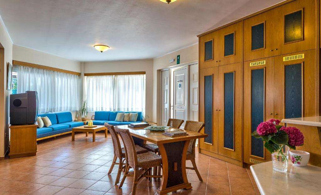 A híres Agii Apostoli parkja, árnyas sétányokkal és hangulatos öblökkel, szintén rövid sétával megközelíthető. A Veronica Hotel nyugodt környezete ideális választás családoknak, pároknak és azoknak, akik értékelik a csendes, mégis jól megközelíthető üdülőhelyet.