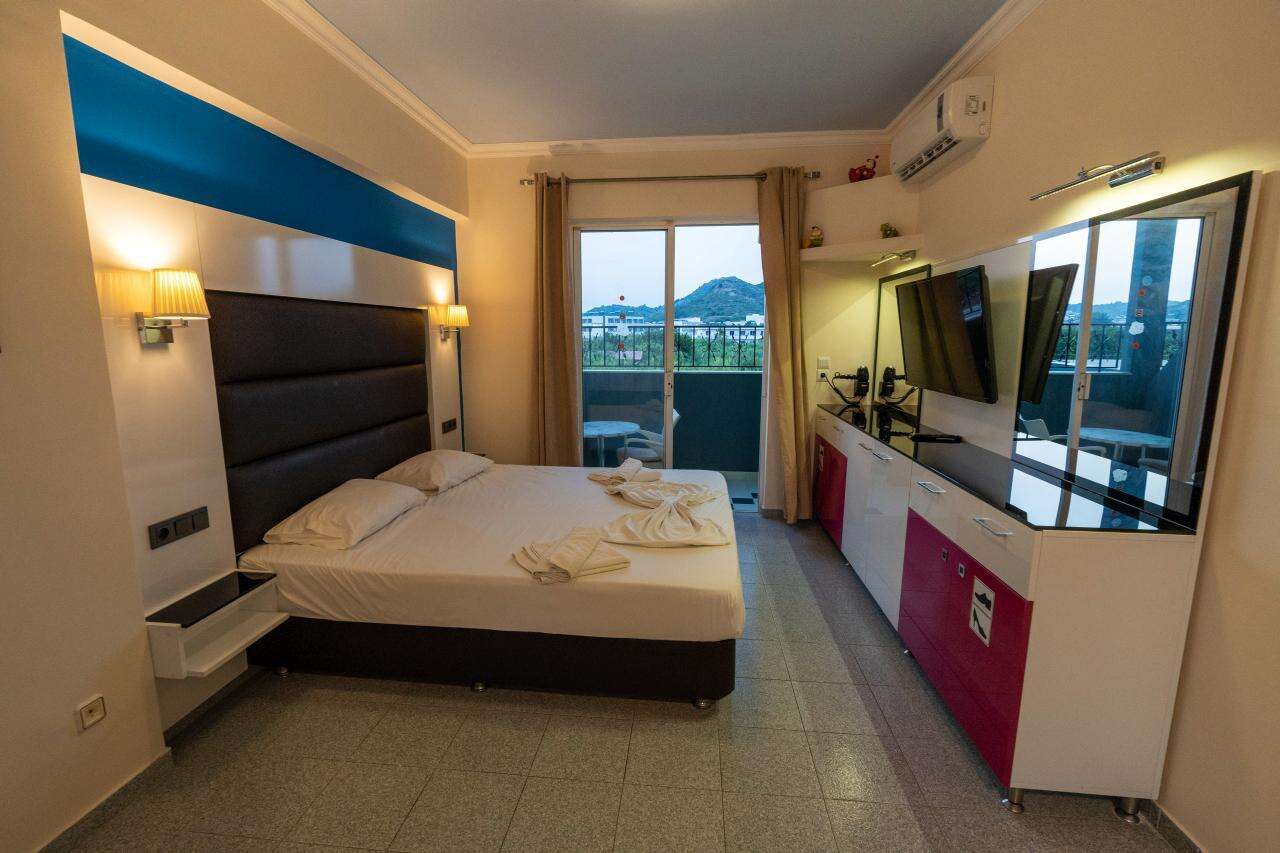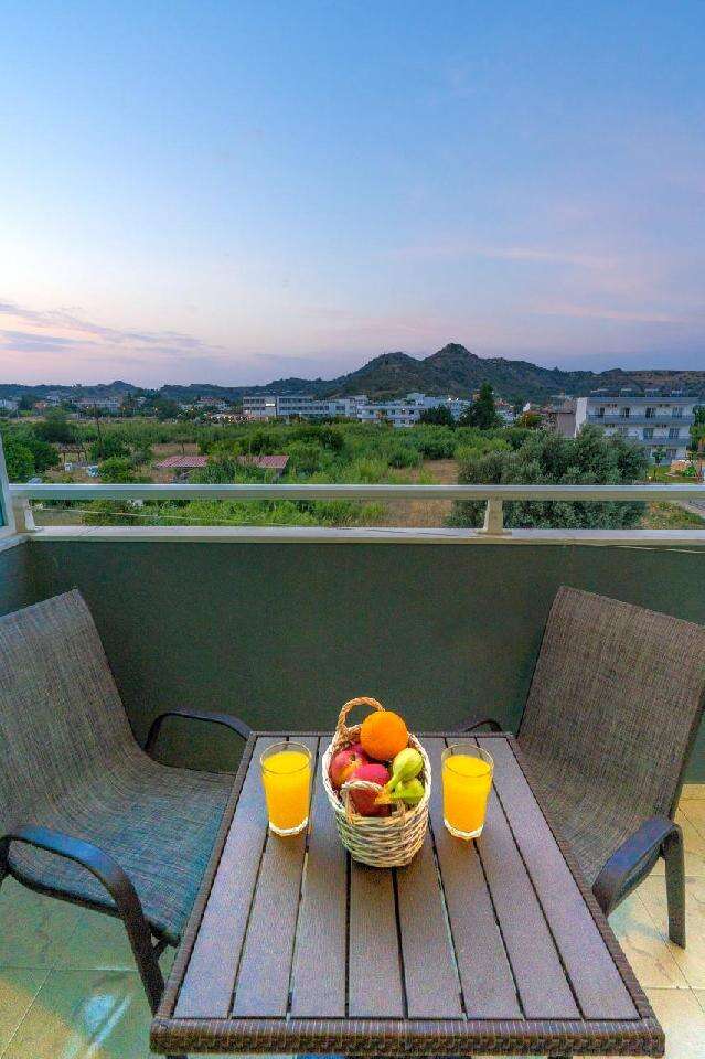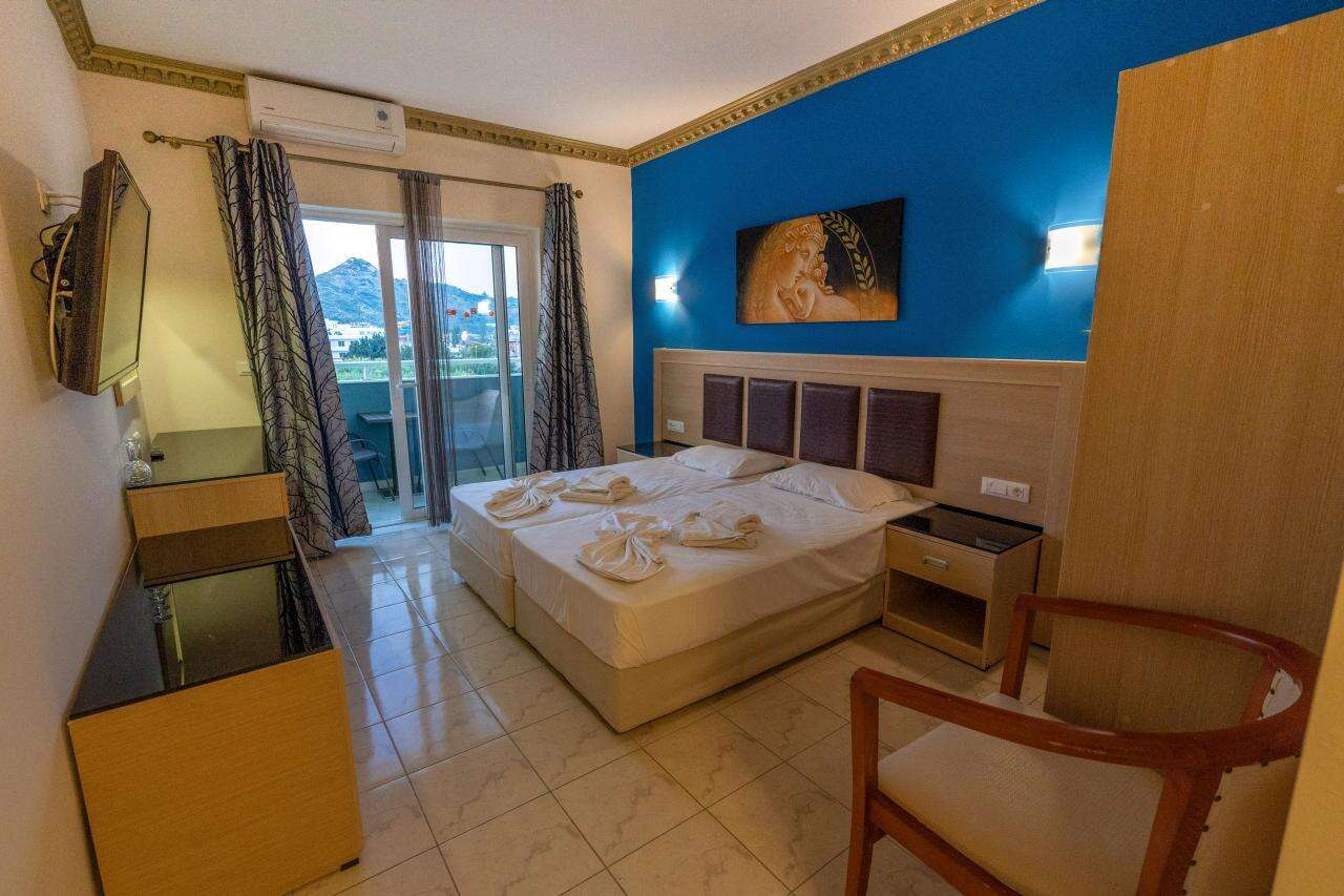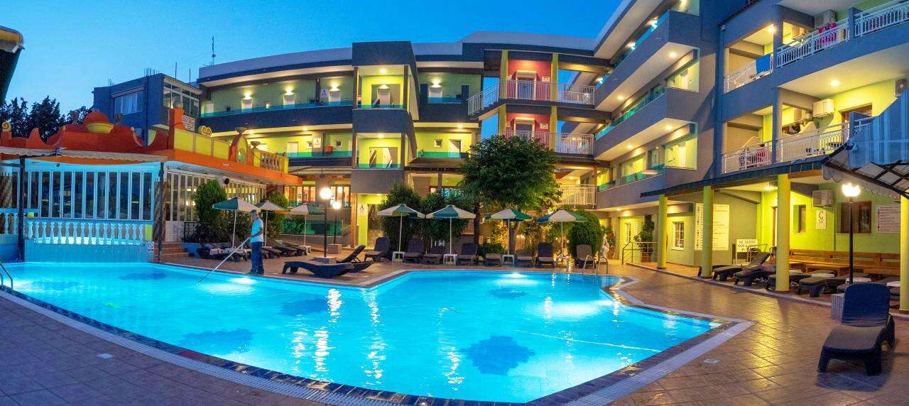 A szálloda egy barátságos, helyi hangulatú mellékutcában fekszik, a legközelebbi strand kb. 350 m-re érhető el. A környéken számos taverna, bár, vízisport-lehetőség, autó- és motorkölcsönző, valamint buszmegálló található, ahonnan Rodosz városa könnyen megközelíthető.