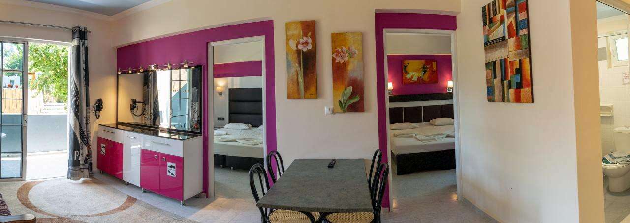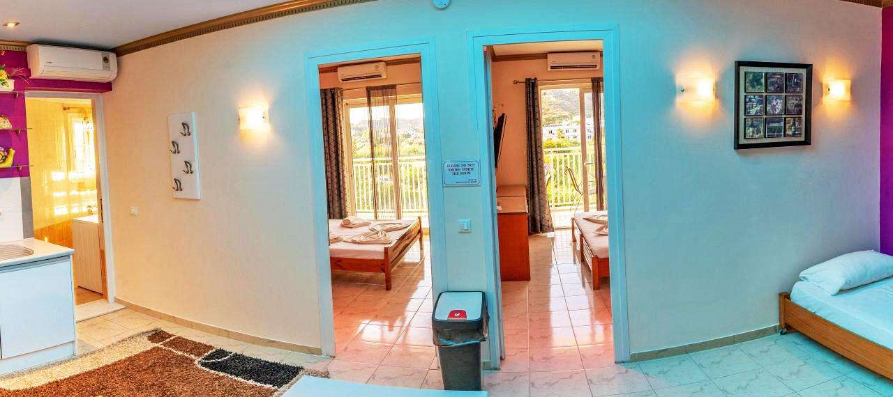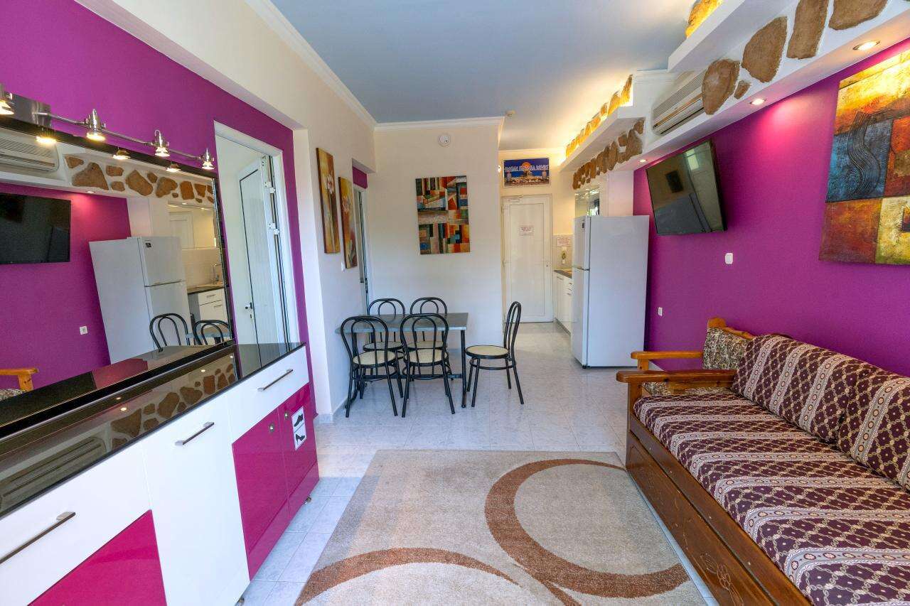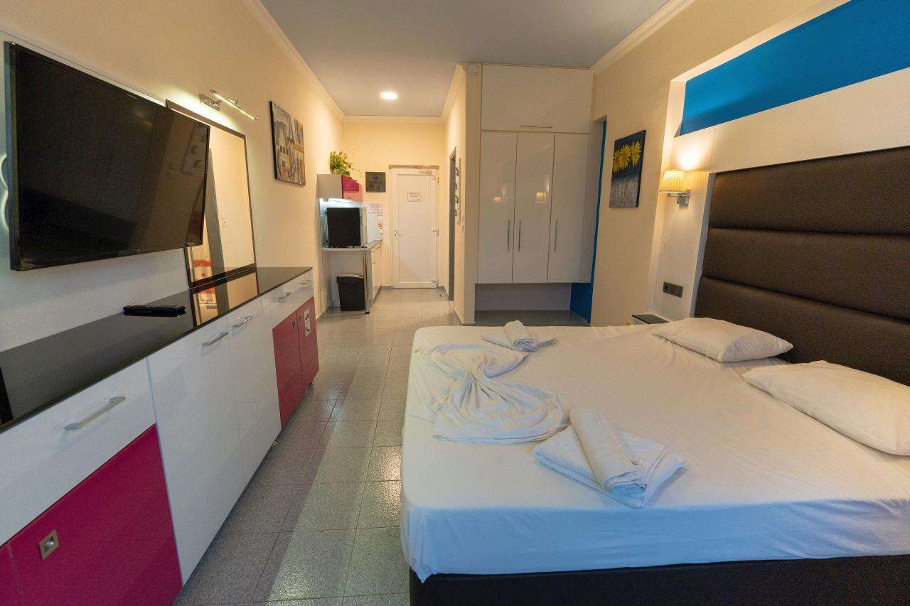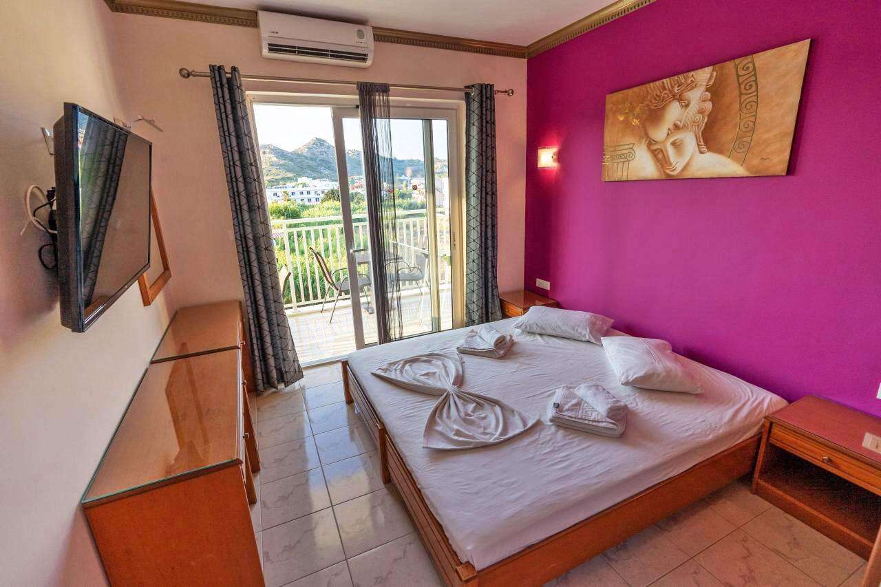 A szálloda egy barátságos, helyi hangulatú mellékutcában fekszik, a legközelebbi strand kb. 350 m-re érhető el. A környéken számos taverna, bár, vízisport-lehetőség, autó- és motorkölcsönző, valamint buszmegálló található, ahonnan Rodosz városa könnyen megközelíthető.