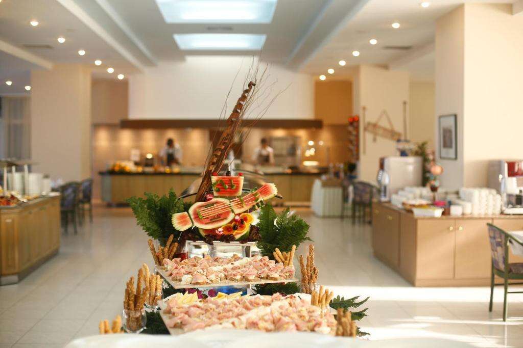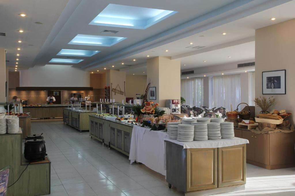 Az all inclusive ellátás svédasztalos reggelit, ebédet és vacsorát foglal magában, valamint helyi alkoholos és alkoholmentes italok fogyasztását a kijelölt időszakokban. A főétteremben görög és nemzetközi ételek kerülnek felszolgálásra, napközben snackek is elérhetők.