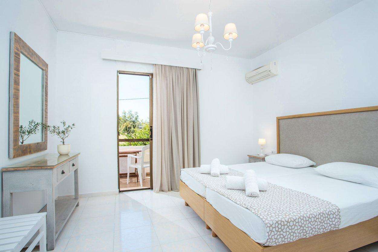 Szobák: Minden stúdió (2-3 fős ) és két hálószobás apartman , praktikusan berendezett, melynek felszereltségéhez légkondicionáló ( a helyszínen fizetendő felár ellenében ), konyhasarok a legszükségesebb eszközökkel felszerelve, fürdőszoba, balkon vagy terasz tartozik. Az egy- és kétágyas szobák is hasonló felszereltséggel rendelkeznek a konyhasarok kivételével.