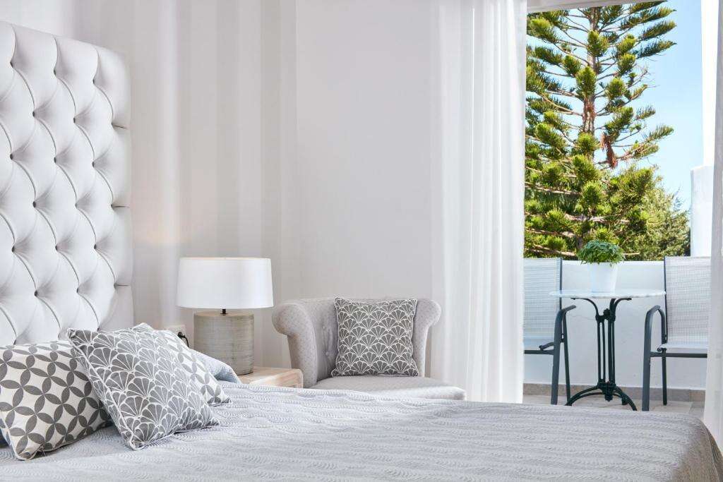 A Santorini Palace Hotel tágas, ízlésesen berendezett, légkondicionált standard erkélyes vagy teraszos szobákkal várja vendégeit. A szobák saját fürdőszobával, hajszárítóval, televízióval, minibárral vagy hűtőszekrénnyel, széffel, valamint Wi-Fi-hozzáféréssel felszereltek.