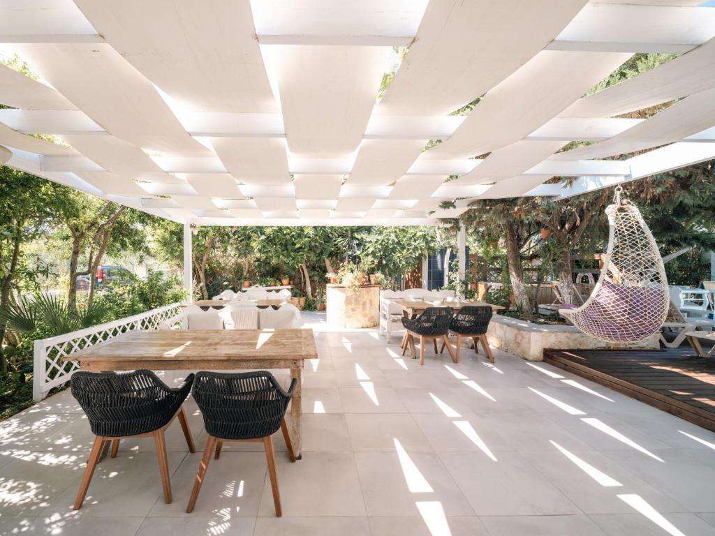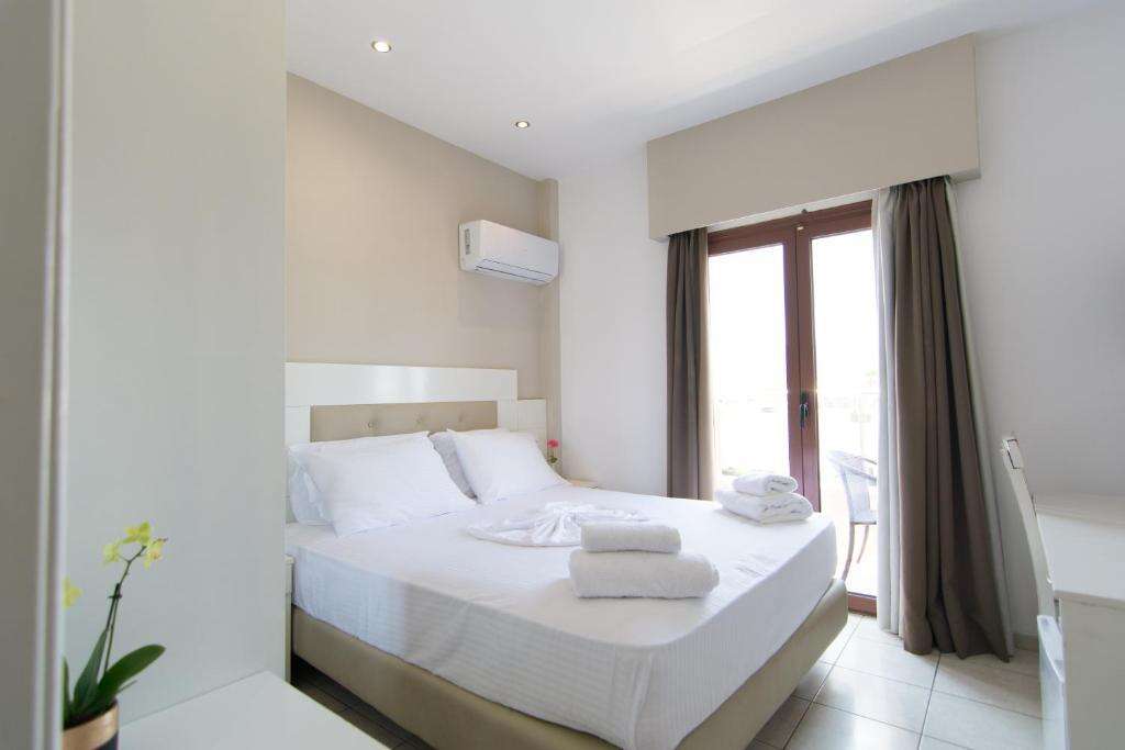 Kontinentális reggeli áll rendelkezésre. A környéken számos étterem és taverna található, ahol a vendégek megkóstolhatják a helyi krétai és a nemzetközi konyha specialitásait.