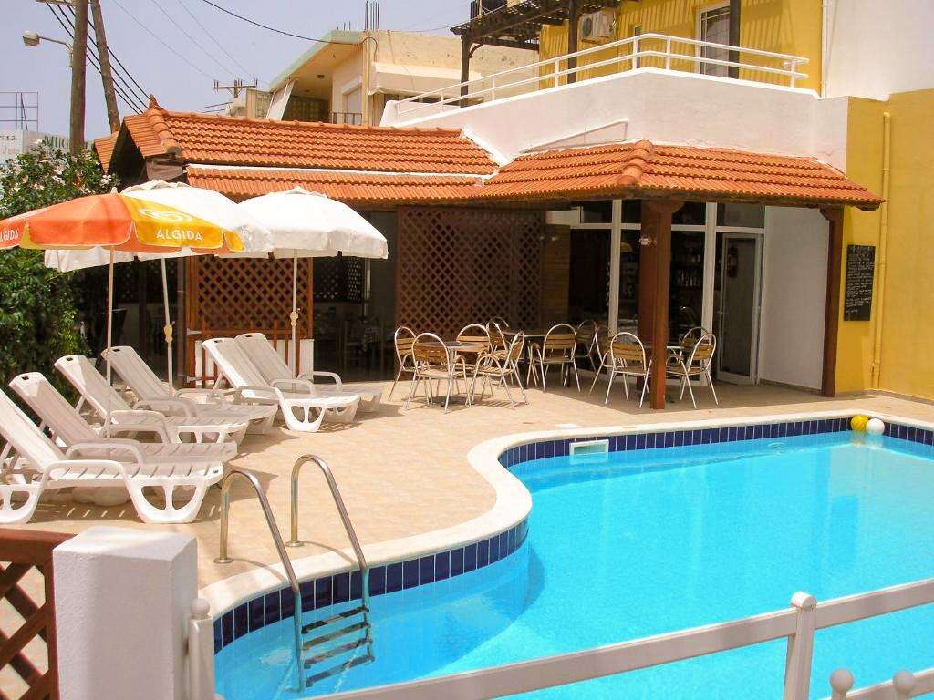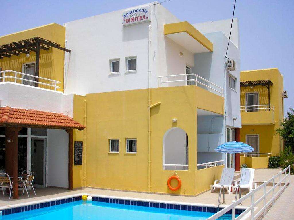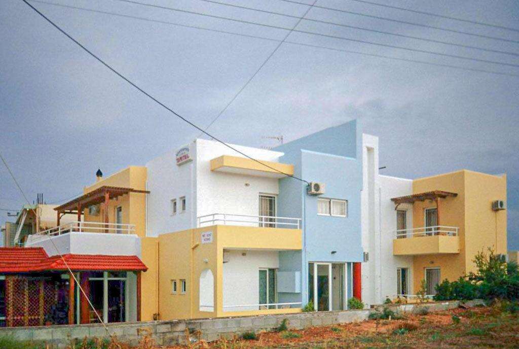 Kiváló elhelyezkedésű, régebbi építésű, családias hangulatú és méterű, mindösszesen 9 apartmanszobát tartalmazó, kiváló értékelésű, kétszintes Dimitra ház, Gouves üdülőhelyen egy csendesebb kisutcában található, a homokos strandtól mindösszesen 200 méternyire.
