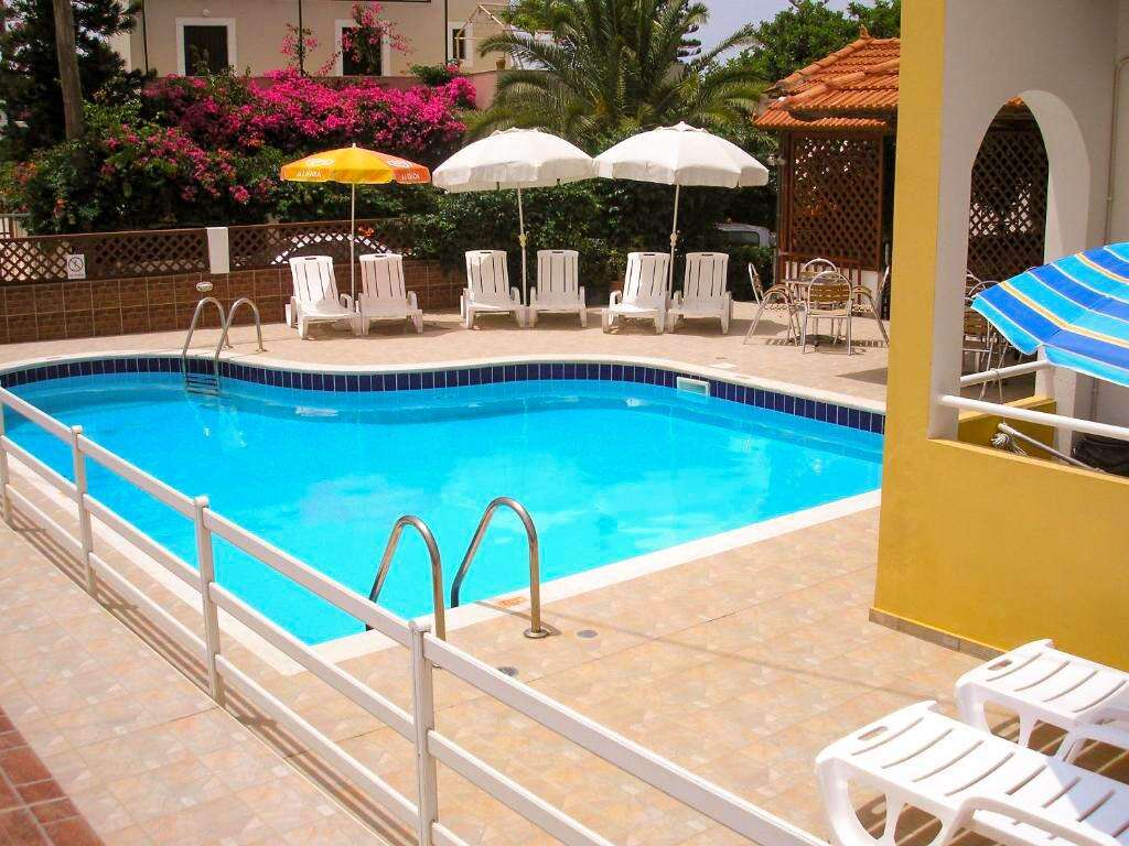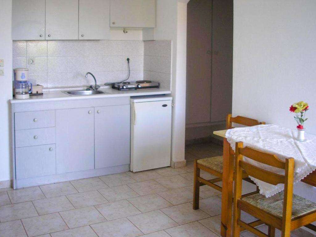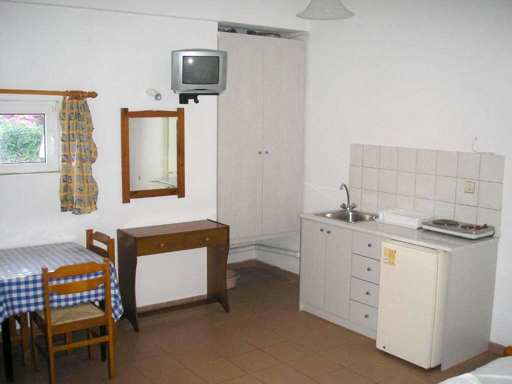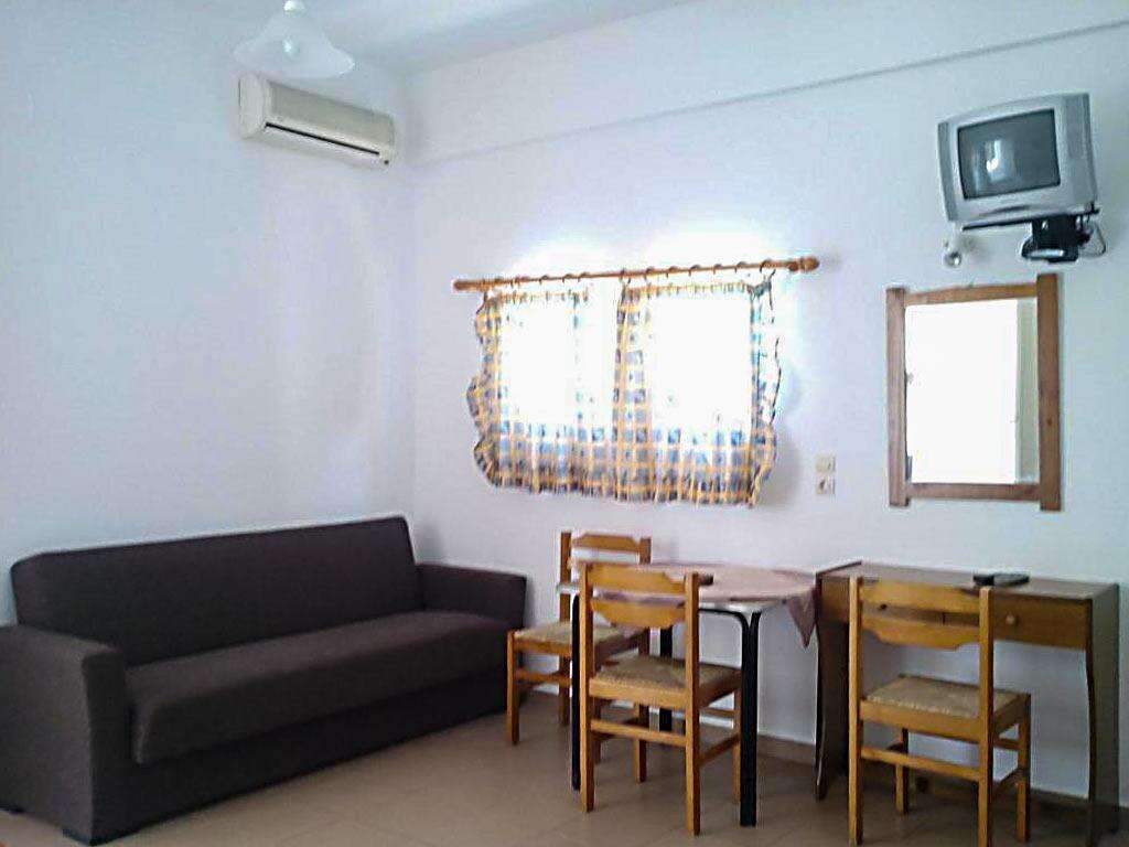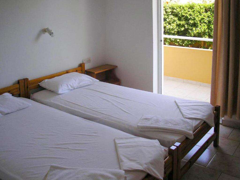 Szobák: minden apartman (2-4 fős) praktikusan és egyszerűen berendezett, fürdőszobával, nappalival (benne: konyhasarok étkező asztallal és székekkel) és egy hálószobával rendelkezik. A hálószobában 2 fő, a nappaliban 1-2 fő helyezhető el, kihúzható díványon. Az apartmanokban tv is található, a konyhasarok minimálisan felszelt, főzőlap, hűtő, vízforraló, kávéfőző, evőeszközök, poharak, tányérok, edények. Az apartmanokhoz erkély tartozik utcai vagy szárazföldre néző kilátással. Felár ellenében, a helyszínen légkondicionálás (kb.6 euró/nap/készülék) igényelhető.