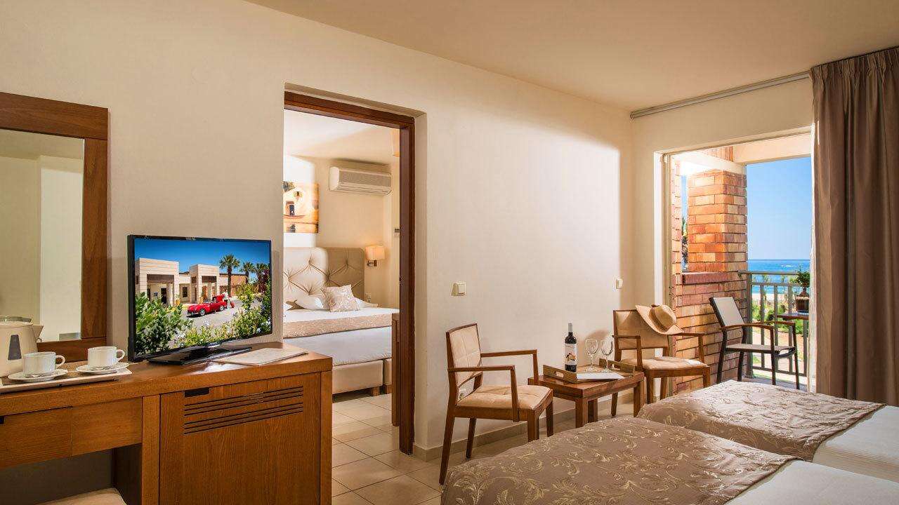 Szobái egyénileg szabályozható légkondicionálóval, szatellit LED Tv-vel, telefonnal, minihűtővel, tea- és kávékészítési lehetőséggel, bérelhető széffel, fürdőszoba/WC-vel, hajszárítóval, papuccsal, köntössel, erkéllyel vagy terasszal felszereltek. Standard szobái (Double garden view / sea view / sea front) kertre-, tengerre- vagy frontálisan tengerre nézőek. Családi szobái (Family Room 2 Bedrooms) két hálószobásak, és némelyikükhöz két fürdőszoba is tartozik. Mozgáskorlátozottak számára speciális szoba lekérhető.