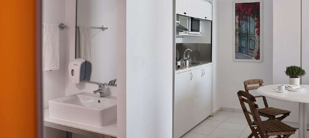 Önellátás .A teakonyhával felszerelt apartmanok lehetőséget biztosítanak az önálló étkezésre, míg a közelben számos étterem és taverna kínál görög és nemzetközi specialitásokat.