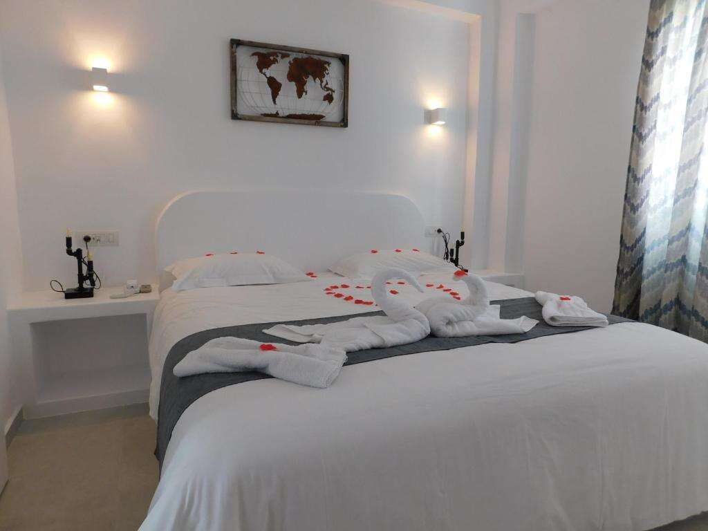 A Nikolas Hotel kényelmesen berendezett, légkondicionált szobákat kínál, amelyek világos, mediterrán hangulatú belső terekkel rendelkeznek. A szobák saját fürdőszobával, televízióval, hűtőszekrénnyel, Wi-Fi-hozzáféréssel, valamint erkéllyel vagy terasszal felszereltek. A kínálatban standard és magasabb kategóriájú szobák is megtalálhatók, egyes típusok medencére vagy tengerre néző kilátással foglalhatók.