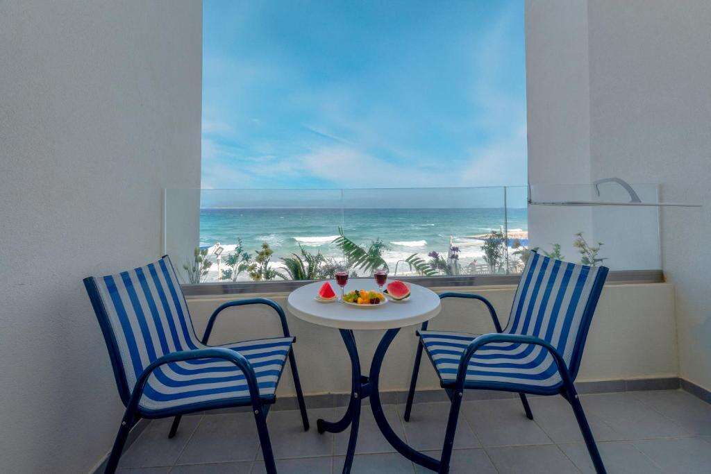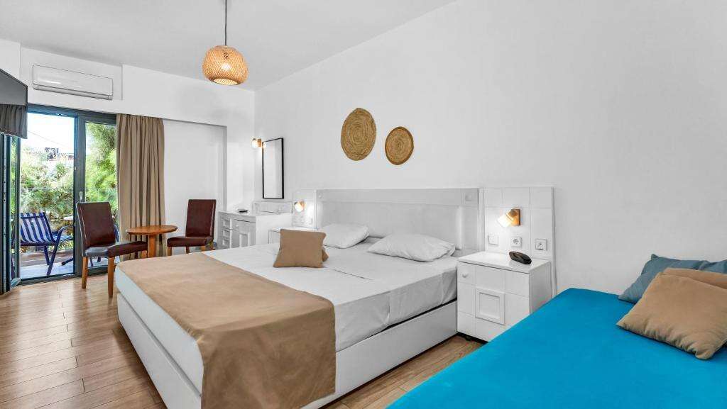 Szobák: minden szoba egyhálószobás (~ 22 m2), kellemes színvilágú, praktikusan berendezett, fürdőszobás, légkondicionálóval, hajszárítóval, hűtővel és Tv-vel felszerelt. A szobákhoz erkély tartozik kertre vagy tengerre néző kilátással. Családi lakosztályok hasonlóan berendezettek és felszereltek, azonban nagyobb alapterületűek (~32 m2), két légteresek (hálószoba 2 ággyal, és nappali kanapéval) és tengerre néző erkéllyel rendelkeznek. Felár ellenében széf a helyszínen bérelhető.
