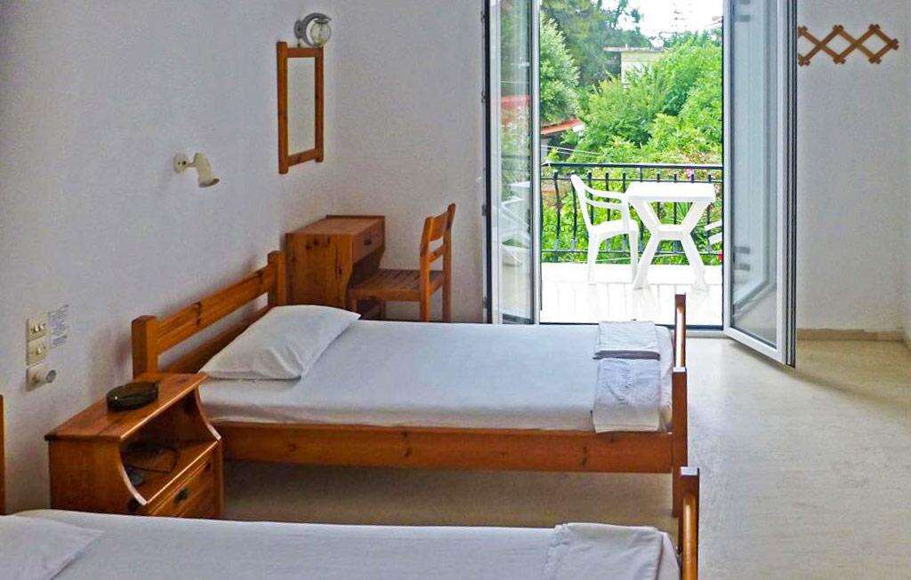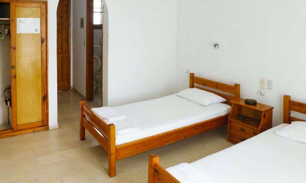 Szobák: Minden stúdió (1-2 fős) egyhálószobás, praktikusan, fabútorokkal berendezett, fürdőszoba tusolóval, kis konyharésszel (főzőlap, mosogató, edények) és hűtővel felszerelt. A szobához erkély vagy terasz tartozik, kertre vagy utcára néző kilátással. Felár ellenében légkondicionálás és széf a helyszínen igényelhető.