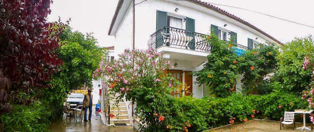 Laganas csendesebb részén található rendkívül népszerű, vendégszerető és gondoskodó görög tulajdonos által üzemeltetett, árnyékos kiskerttel rendelkező, tiszta apartmanház, a homokos tengerparttól kb. 400 m-re, Laganas központjától pedig kb. 800 m-re épült.