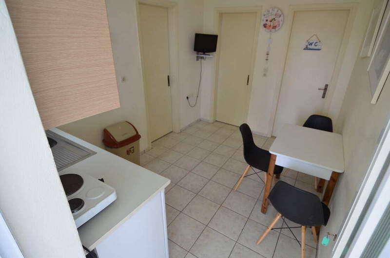 2 ágyas stúdió: egyszerűen berendezett, kényelmes, egy légterű helyiség, konyhasarokkal, légkondícionáló (felár ellenében), hűtő, zuhany, balkon/terasz. A stúdiók földszinti és emeleti elhelyezkedésűek is lehetnek.
