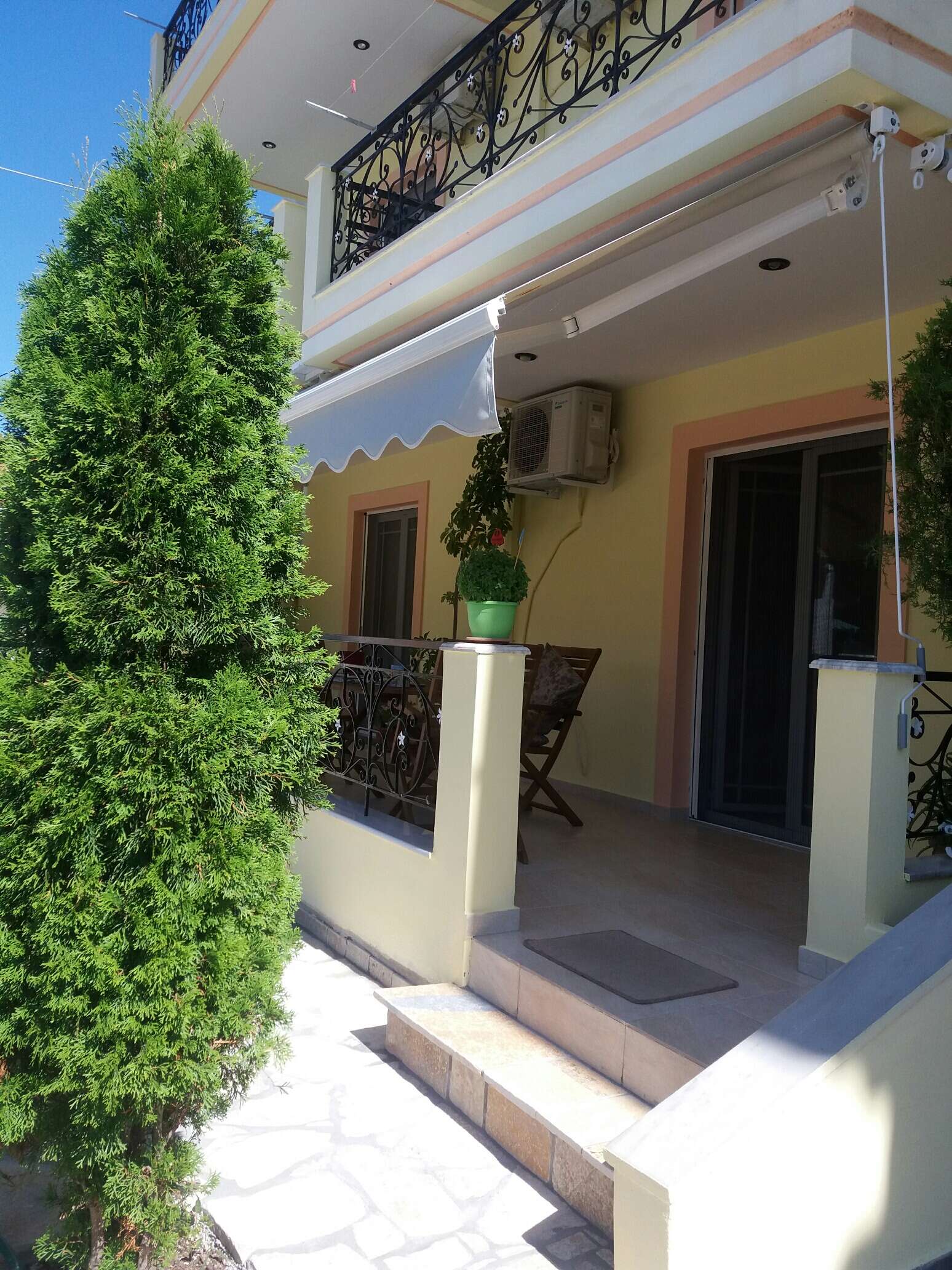 Az apartmanház kb. 1 km-re fekszik a homokos/kavicsos tengerparttól, nem messze a Phillipos apartmanháztól. A központ, illetve a kikötő kb. 700 méterre található