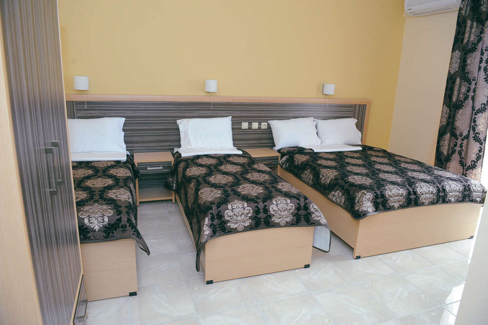 2-3 és 3-4 ágyas stúdiók: tágas, igényes berendezésű szobák, ahol a konyhasarok és az ágyak egy légtérben vannak. A stúdiók felszereltségéhez légkondicionáló (felár a helyszínen fizetendő, 42 EUR/készülék/hét), tévé, konyhasarok - mely a legszükségesebb eszközökkel felszerelt -, fürdőszoba zuhanyzóval, illetve kerti bútorokkal berendezett terasz tartozik.