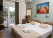A padlótól a mennyezetig érő ablakokkal rendelkező, légkondicionált szobák mindegyike erkéllyel rendelkezik, ahonnan kilátás nyílik a medencére, a kertre vagy a Krétai-tengerre. A szobákban műholdas TV, széf és hűtőszekrény található. Minden saját fürdőszobában hajszárító áll rendelkezésre.