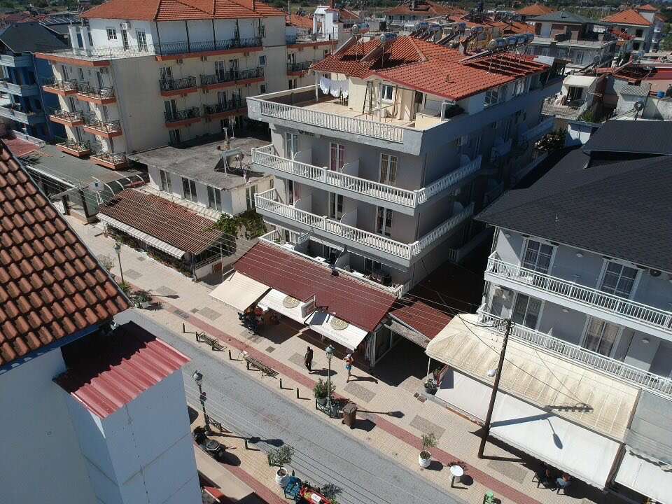 A kiváló elhelyezkedésű apartmanház Paralia sétálóutcáján, a széles, homokos tengerparttól kb. 50 méterre található. Közvetlen szomszédságában kávézók, tavernák, üzletsorok sokasága áll az itt üdülők rendelkezésére.