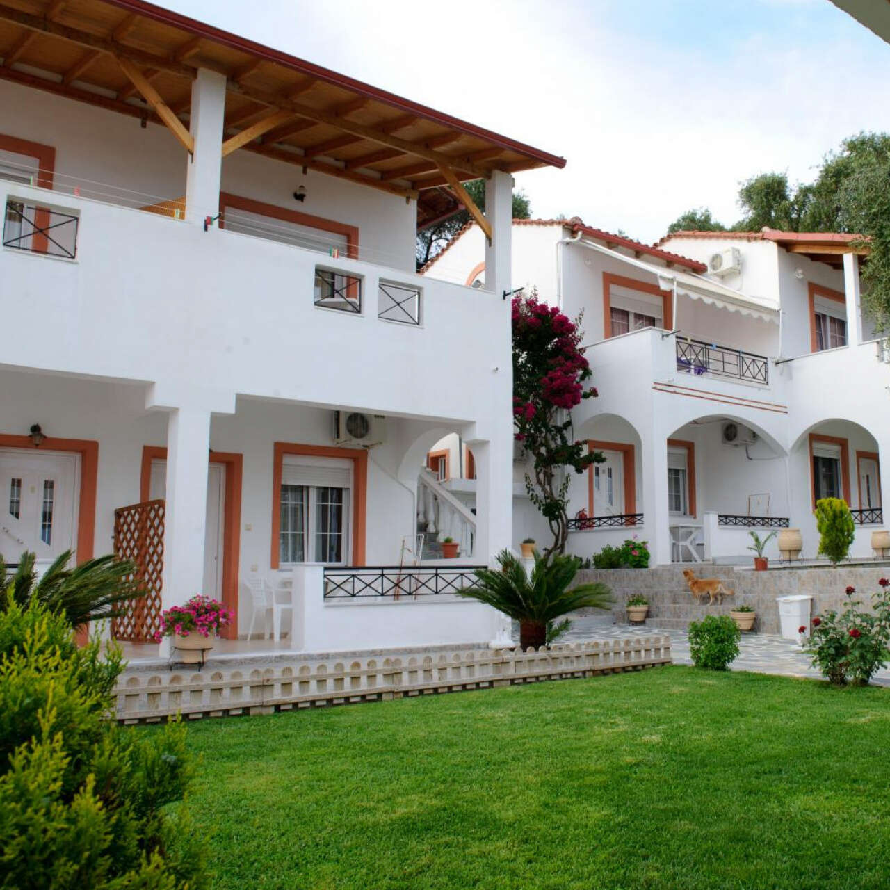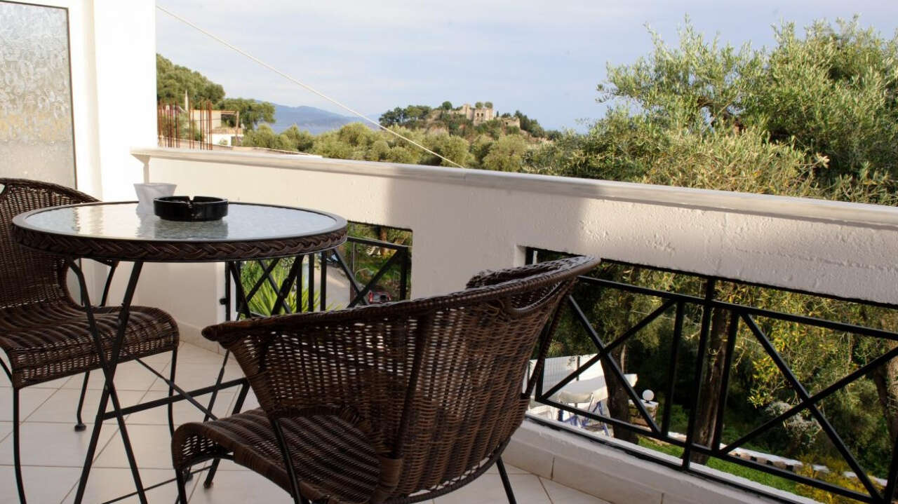 Parga magasabb részén, a vár közelében fekszik 50 m tengerszint feletti magasságban. Pozíciójából adódóan minden szoba teraszáról kilátás nyílik a tengerre. Az apartman kertjében egy bár is várja a vendégeket. A házhoz a Valtos Beach tengerpartja esik közelebb.