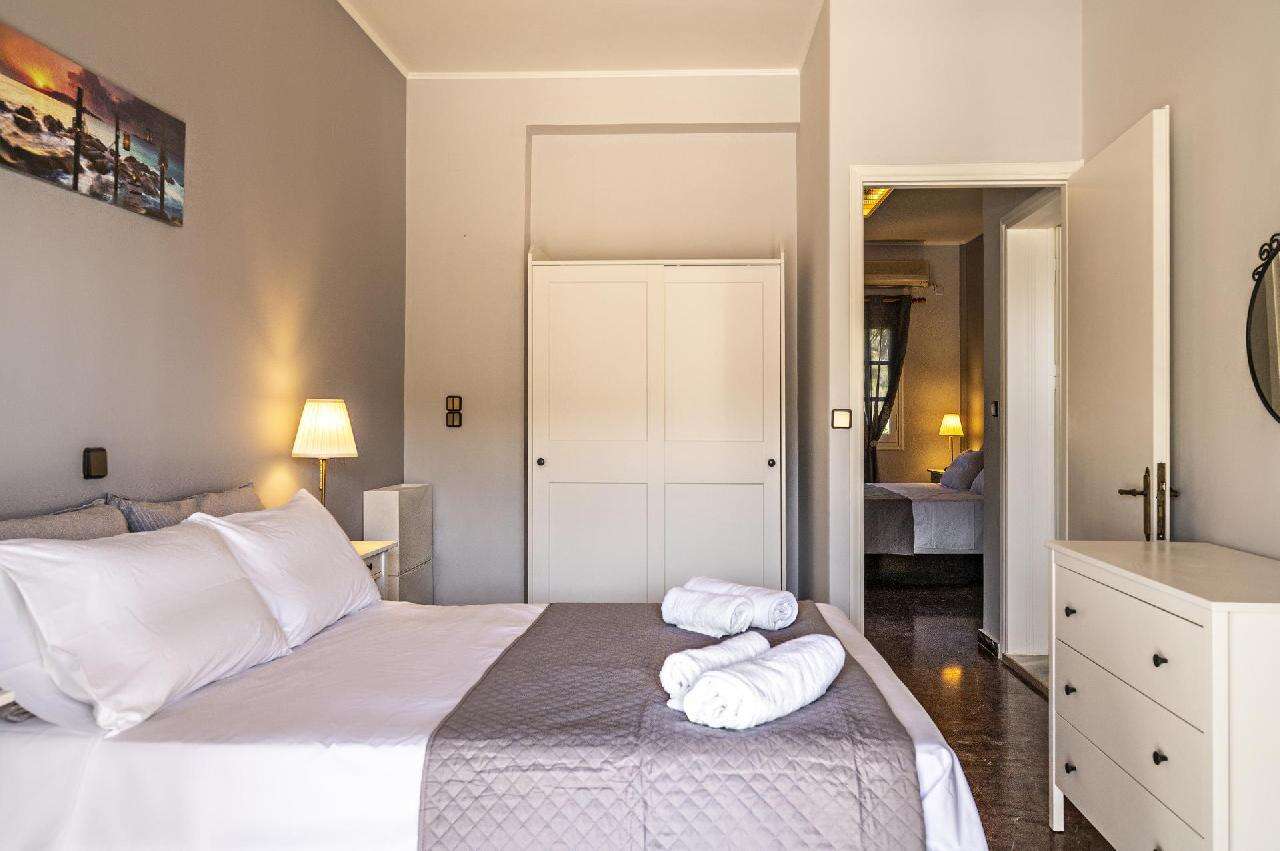 Szobák: Minden stúdió (~28m2) a közelmúltban felújított, szépen berendezett, konyhával (a főzősarok és étkező a hálószobában van kialakítva), fürdőszoba zuhanyzóval, hajszárítóval, hűtővel és vízforralóval felszerelt. Minden apartman (~46m2) hasonlóan berendezett, két hálószobás, stúdió jellegű konyhával, hűtővel, vízforralóval, fürdőszoba zuhanyzóval felszerelt. Minden szobához erkély vagy terasz tartozik, szárazföldre vagy medencére néző kilátással. Az apartmanoknál az 5. fő és a stúdióknál a 3. fő elhelyezése pótágyon történik. A szobák minősége jelentősen felülmúlja az átlagos görögországi apartmanok színvonalát, jó felszereltséggel és kiemelkedő kényelemmel. Egyes szobák berendezése, színvilága, kialakítása eltérhet a többitől. Felár ellenében légkondicionálás a helyszínen igényelhető: kb.: 10 euró / nap / klíma