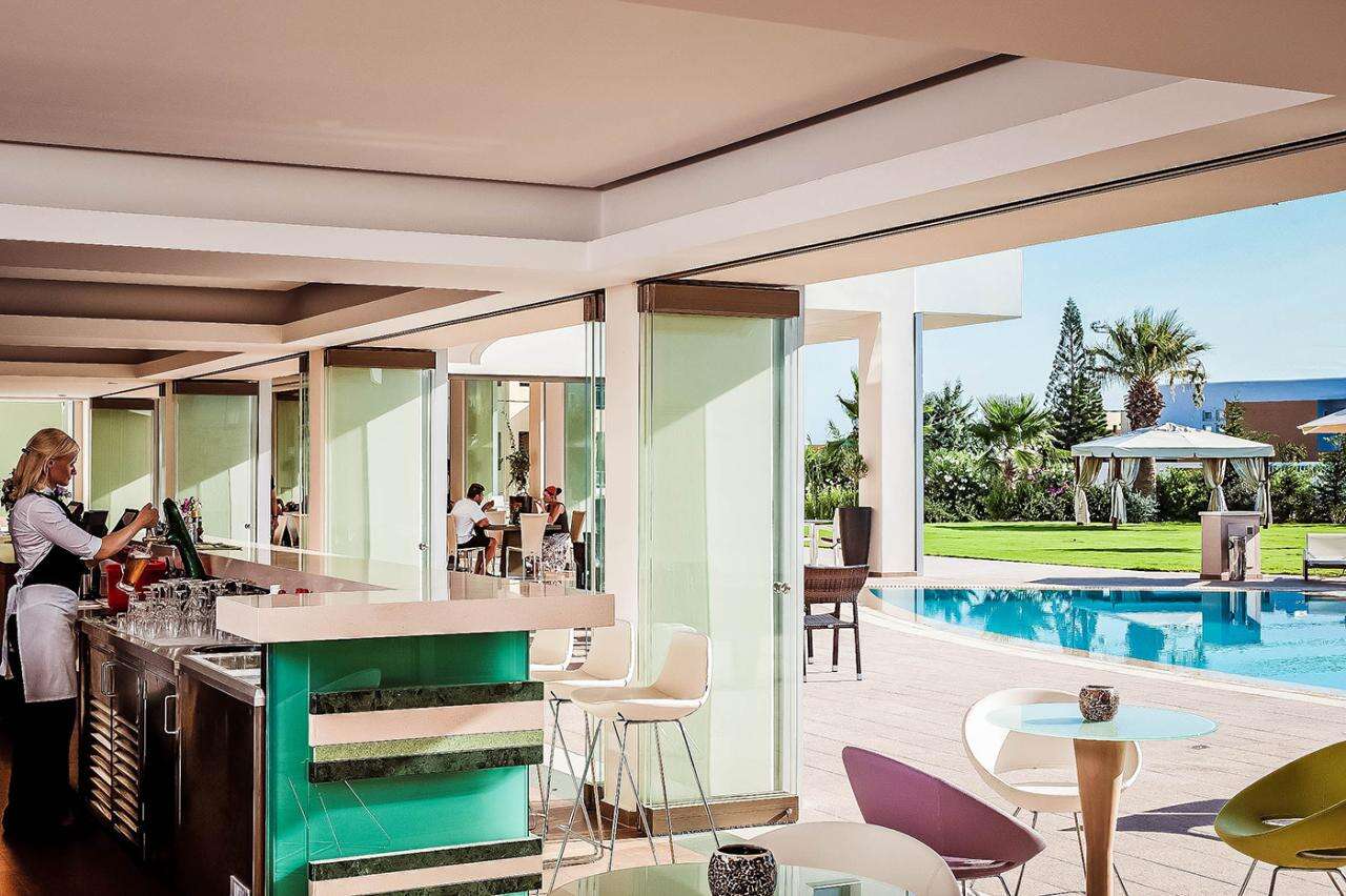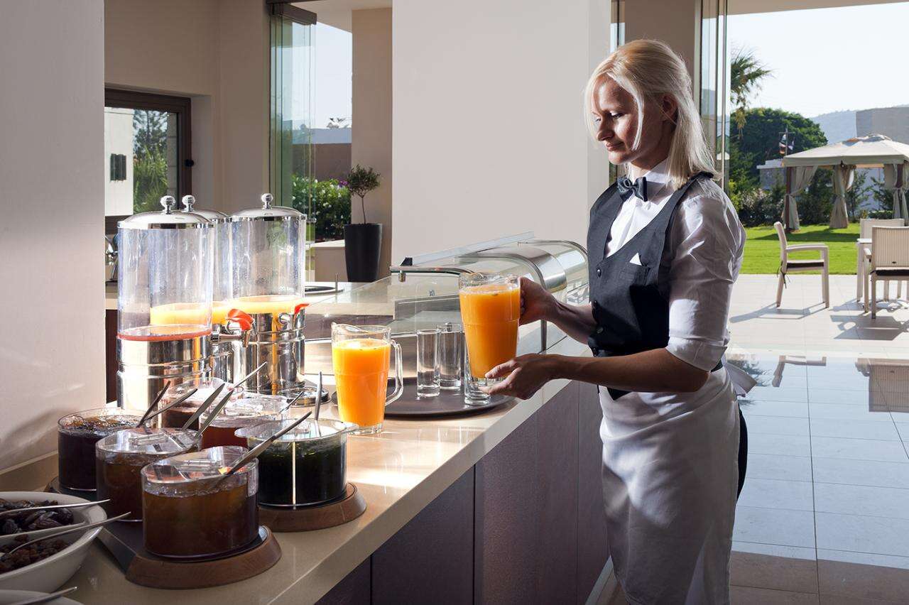 Ínyenc krétai és a világ minden tájáról származó fogásokat tálalnak fel az Elea étteremben, ahonnan panorámás kilátás nyílik a hegyekre. A vendégeket érkezéskor sherry vagy délutáni tea várja, illetve 16 órás szobaszervizt biztosítanak.
